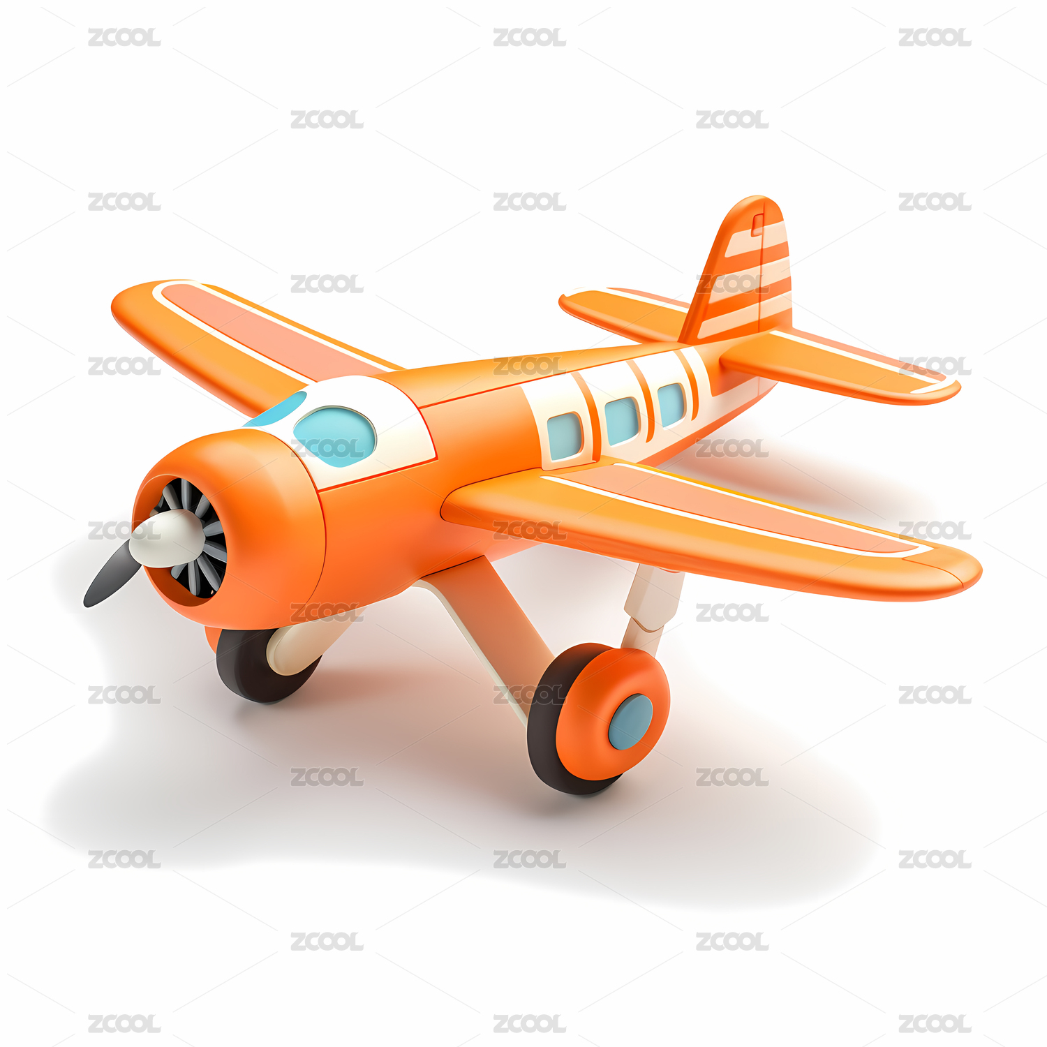 3D,卡通,白底图,飞机,滑翔机,飞行,螺旋桨,机翼,蓝色,黄色