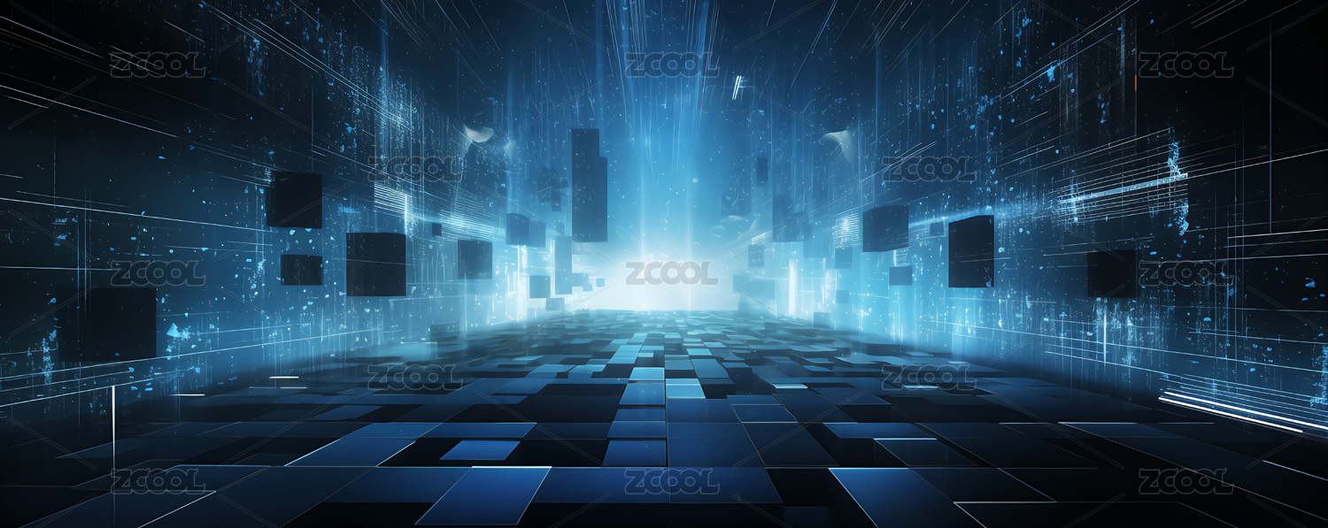 科技感蓝色数据流隧道矩阵空间背景壁纸
