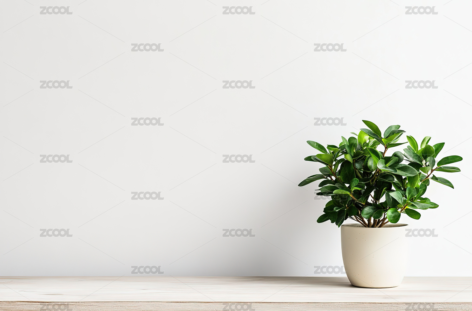 干净的室内白墙和绿植装饰简约空白渲染背景