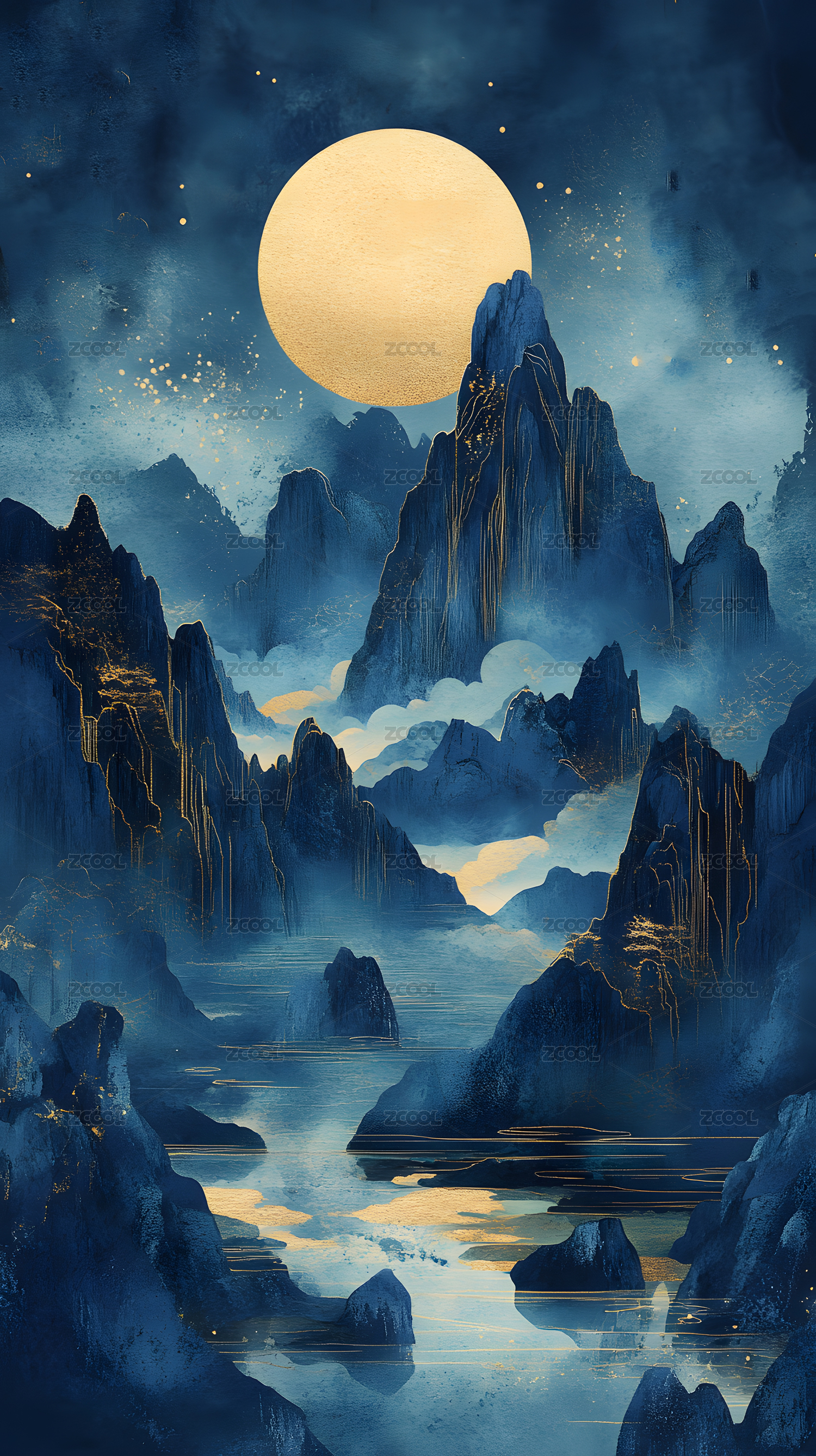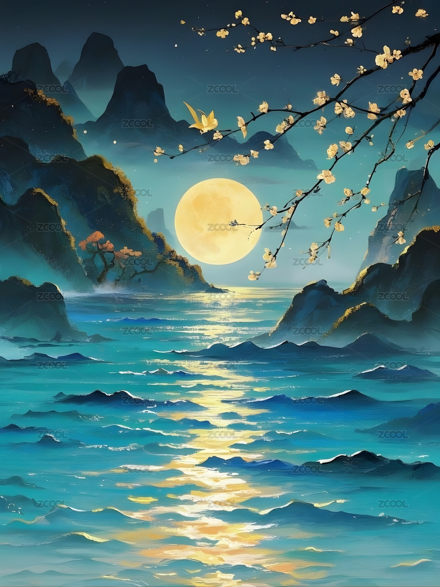 天空,户外,AI数字艺术,风景,地形,自然,自然美,夜晚,月亮,树