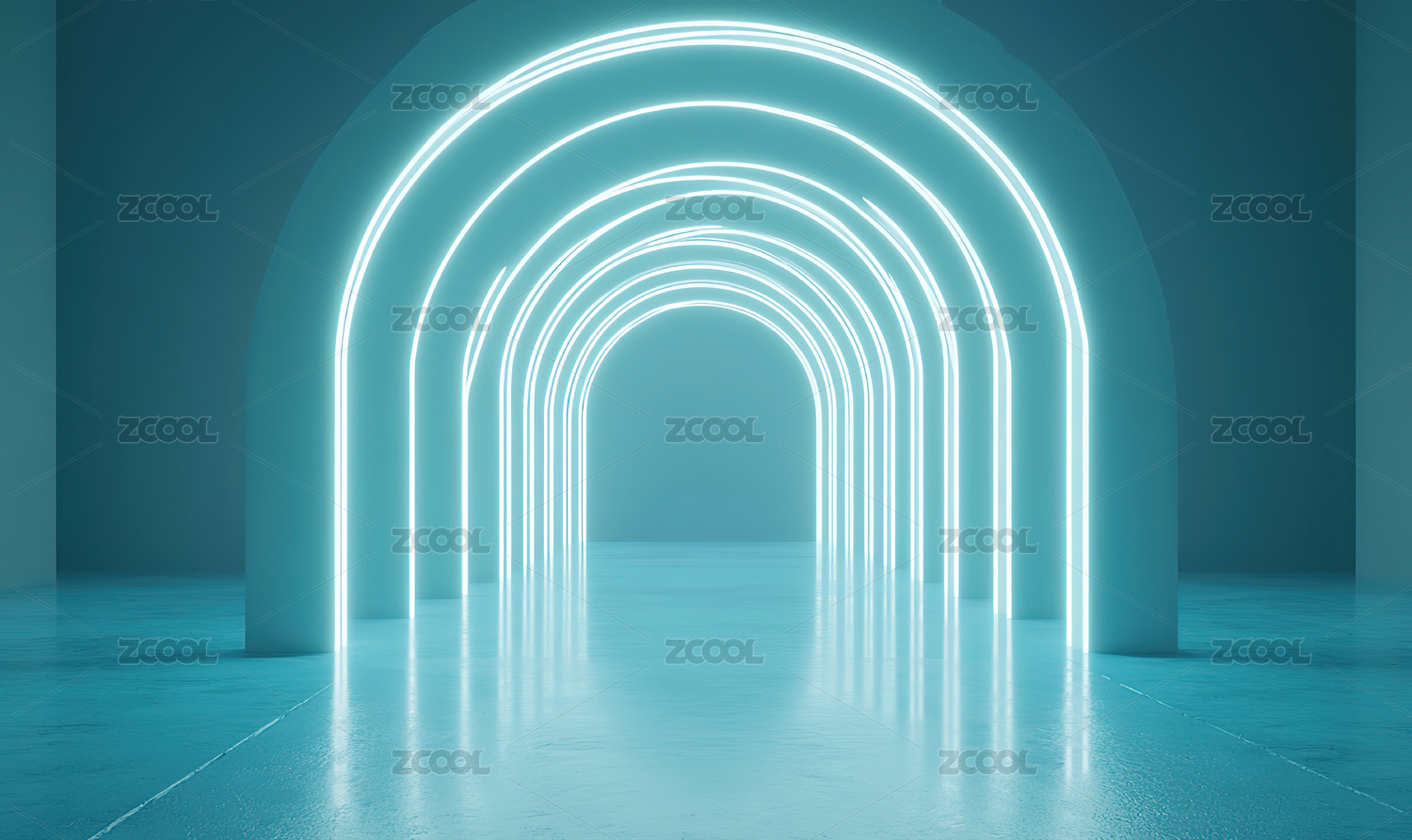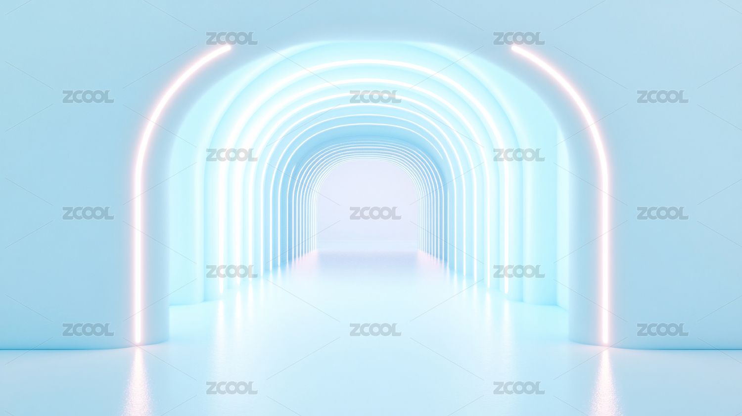 梦幻蓝色拱廊通道