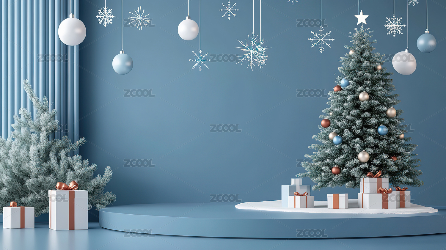 蓝色系圣诞节产品展示台