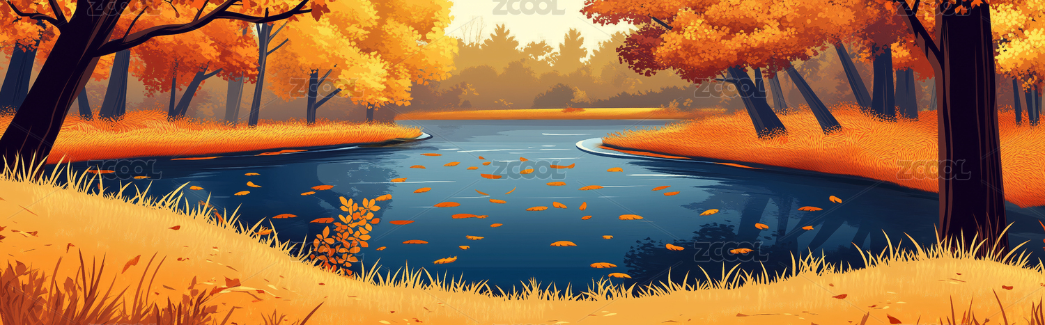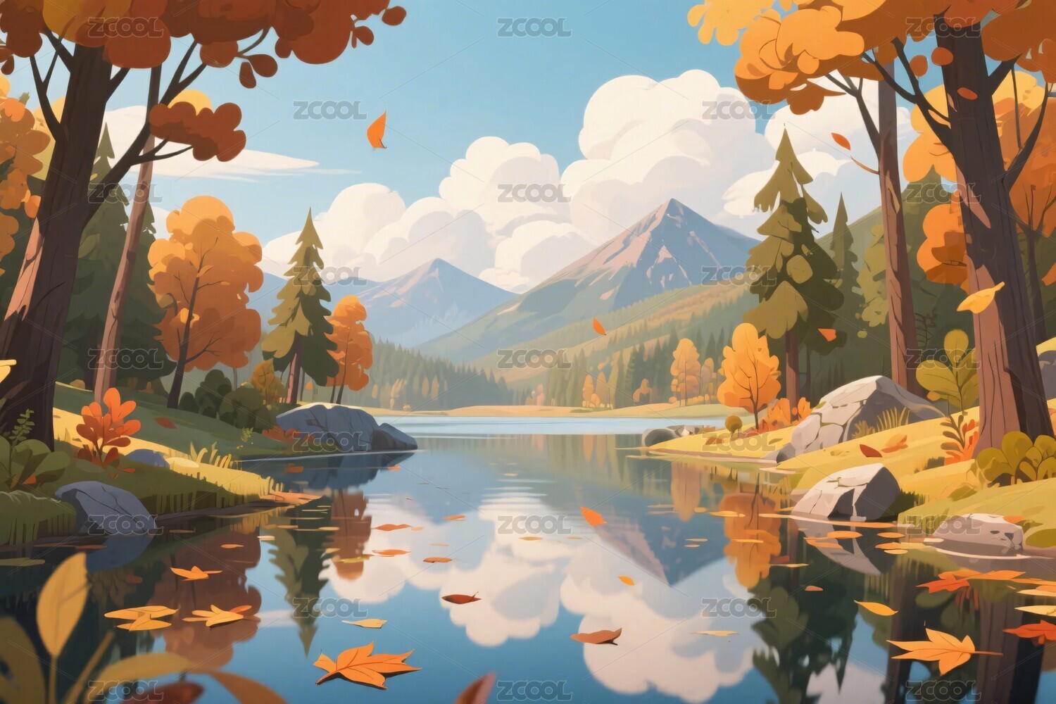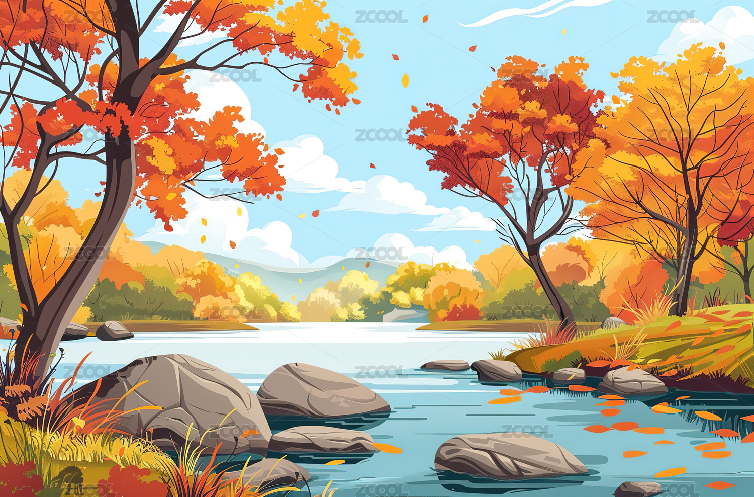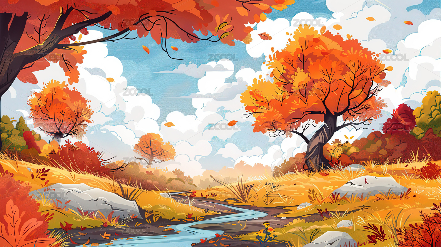 秋天秋季立秋秋分自然户外风景卡通漫画插画