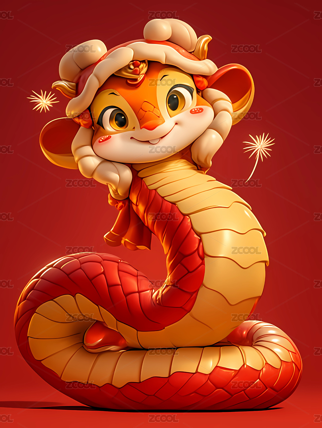中国传统新年3D卡通生肖蛇IP形象