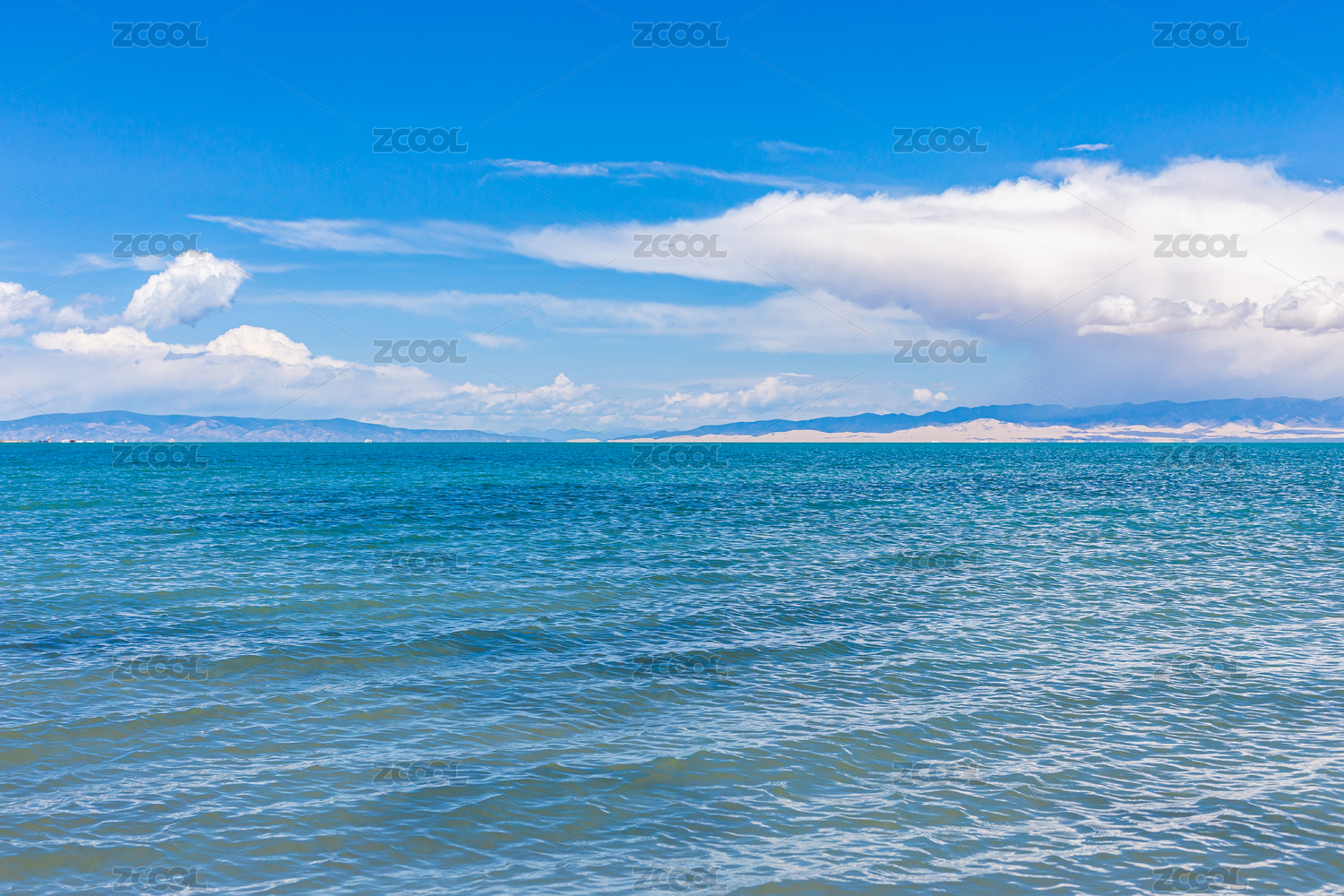 沙滩,湖边,蓝色,波纹,水,水面,天空,云,留白,简单