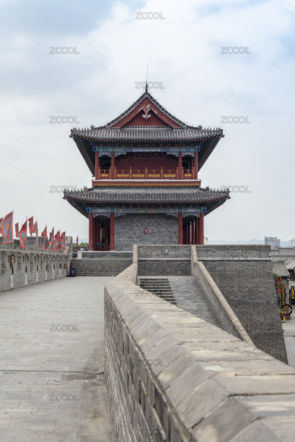 中国广东惠州市朝京门城楼和古城墙建筑风光