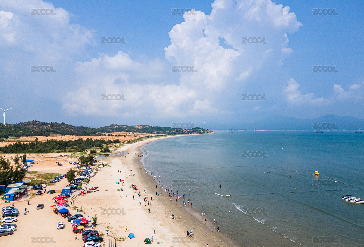 中国广东汕尾红海湾施公寮风车岛海岸线风光全景