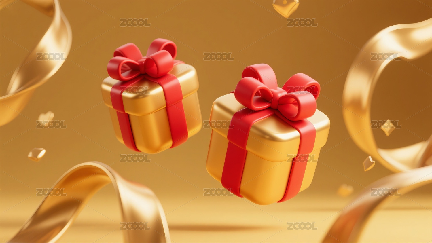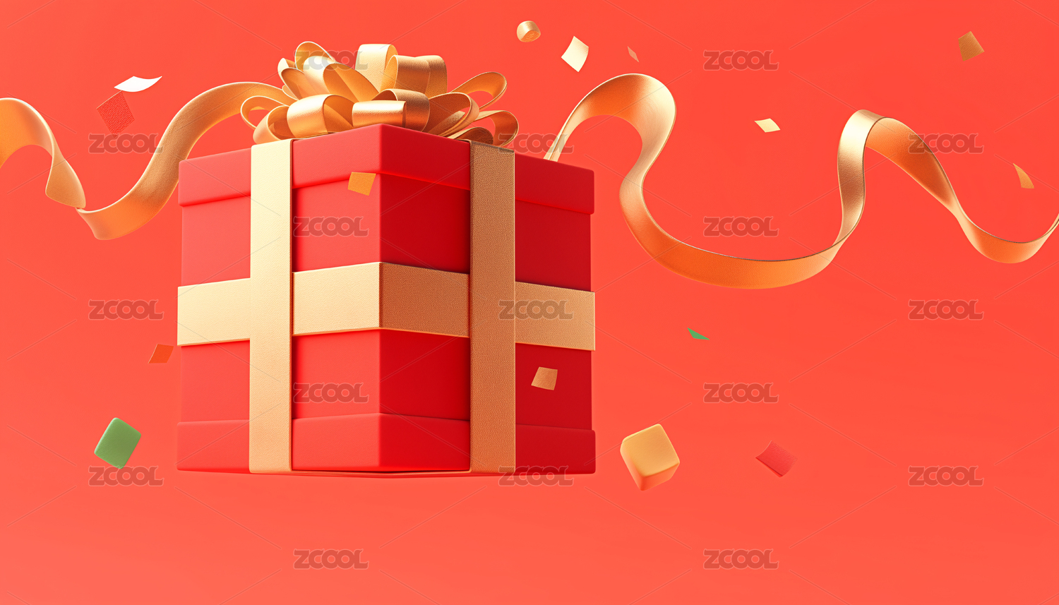 红色礼盒金色丝带喜庆节日促销3D插画