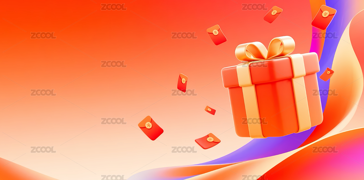 3d卡通电商线上促销狂欢庆典礼物红包组合