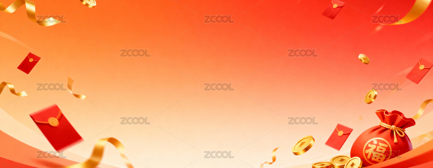 喜庆红包金币丝带背景
