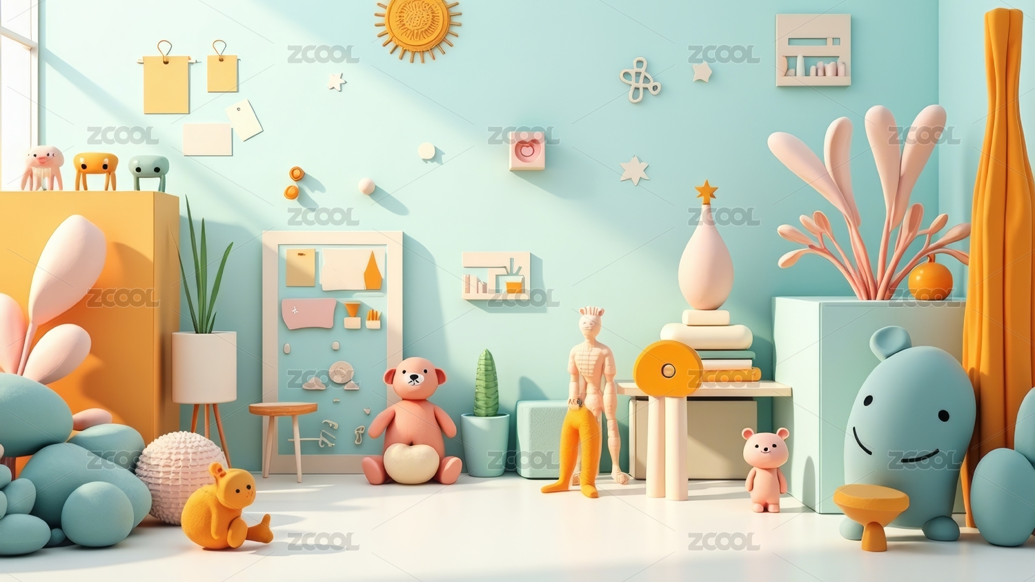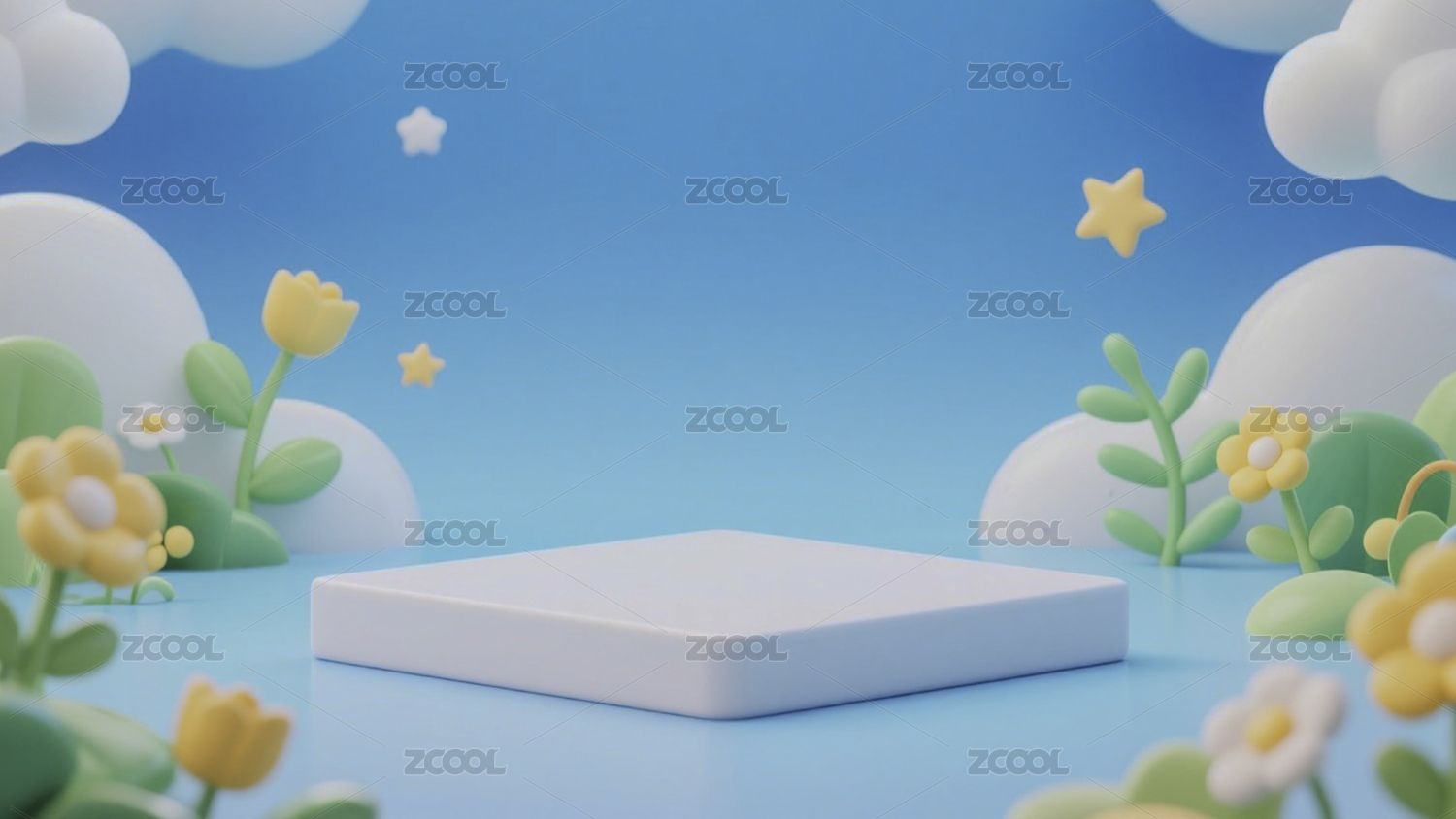 简约,装饰,蓝色,可爱,黄色,3D,植物,云朵,星星,储物箱