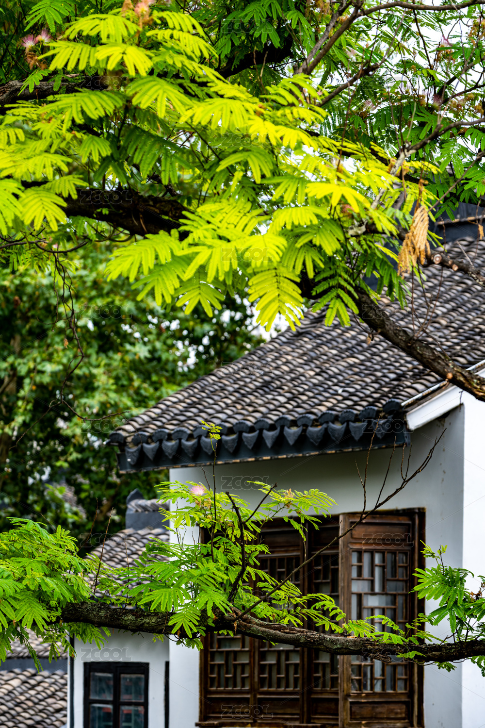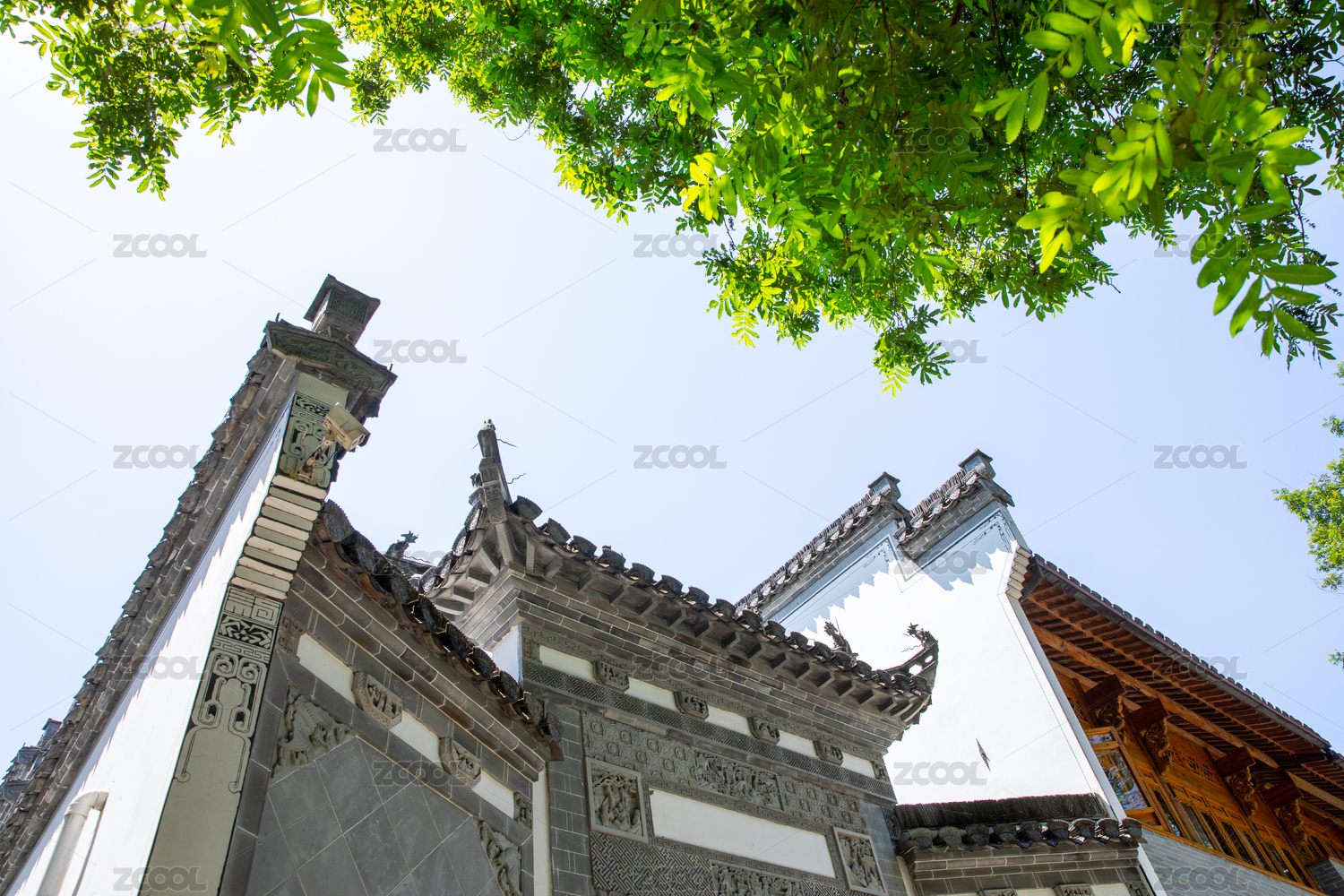 浙江金华古子城 阳光斑驳 树影映在白墙上
