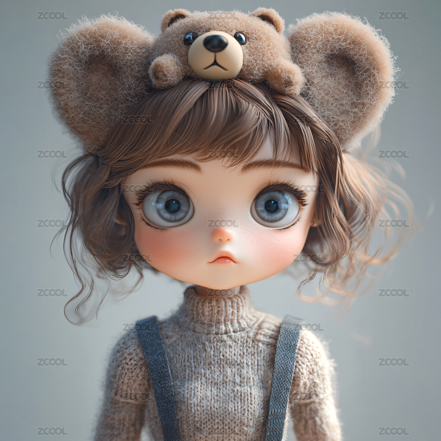头像,插画,女娃,脸部,流泪,耳朵,小猫,狐狸,泥塑,画稿