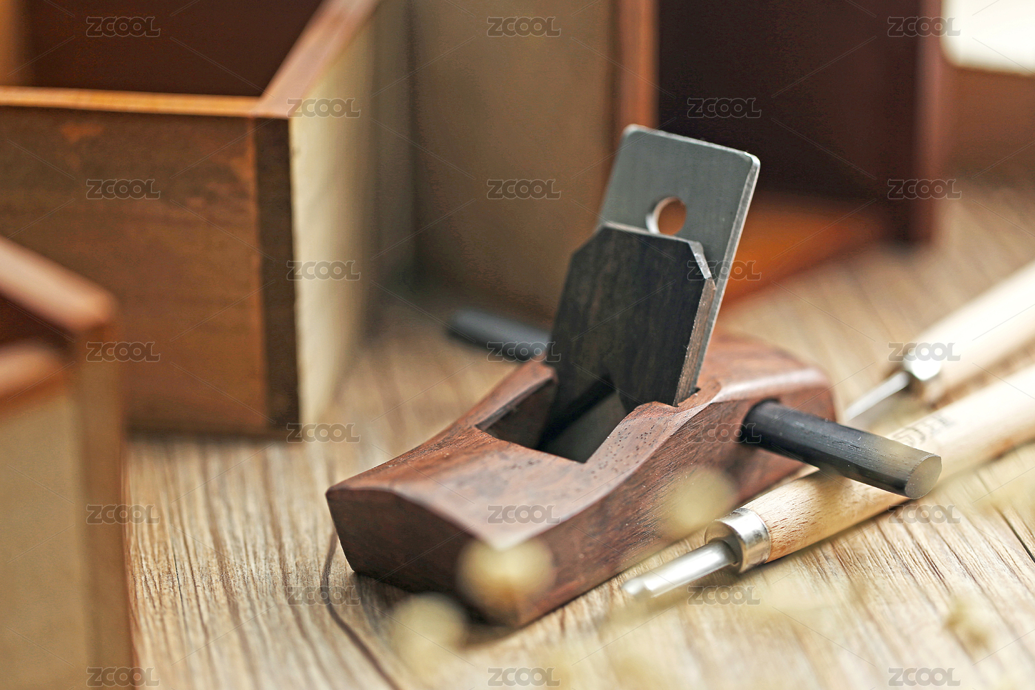 刨子放在木桌上