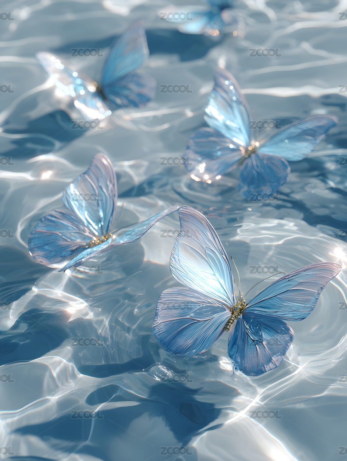 数码海中紫色蝴蝶场景抽象图形海报网页背景