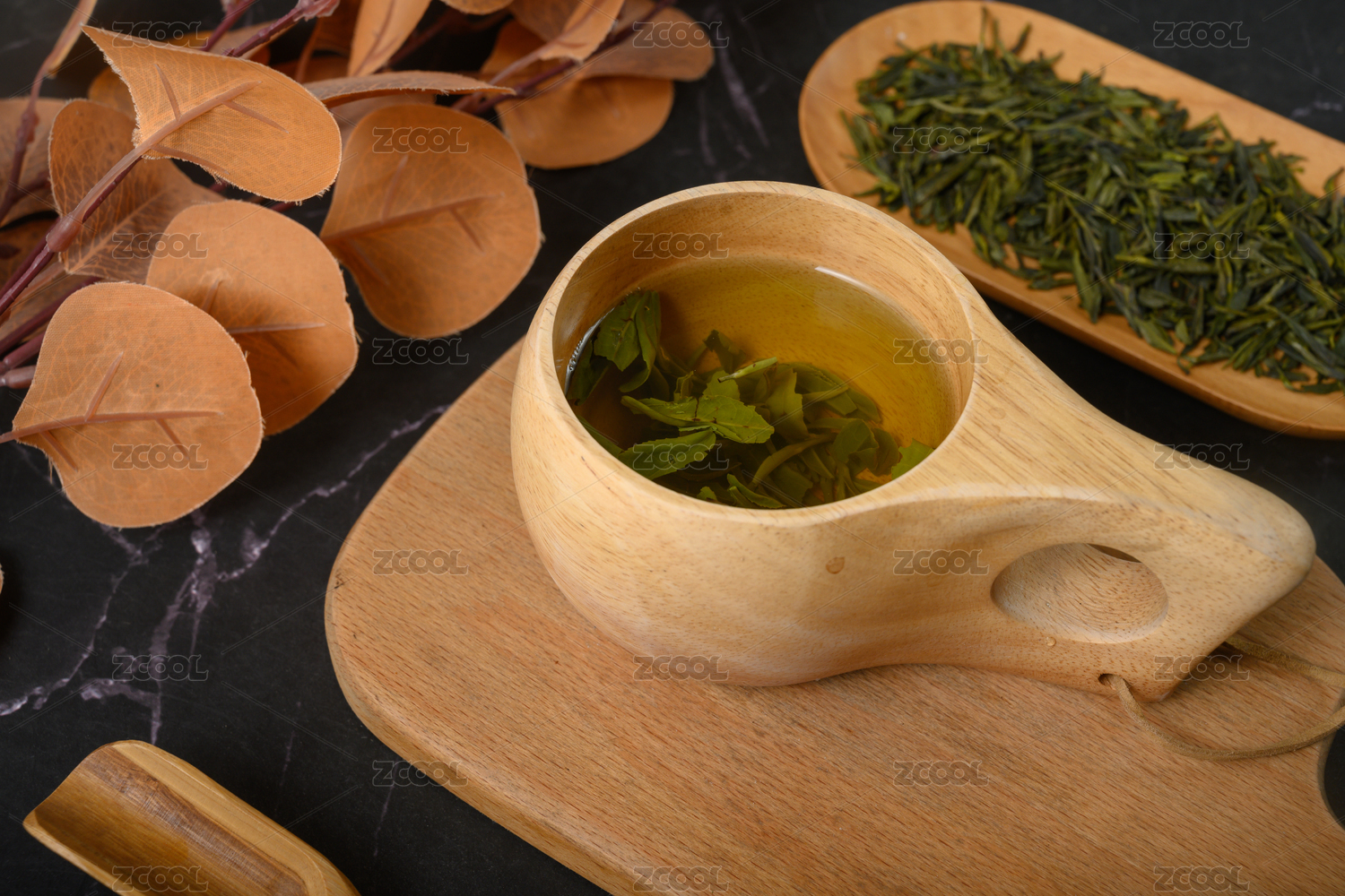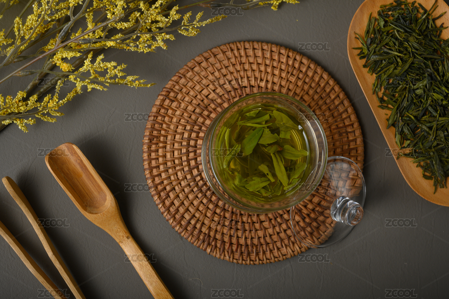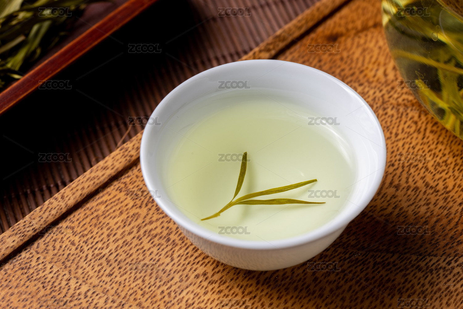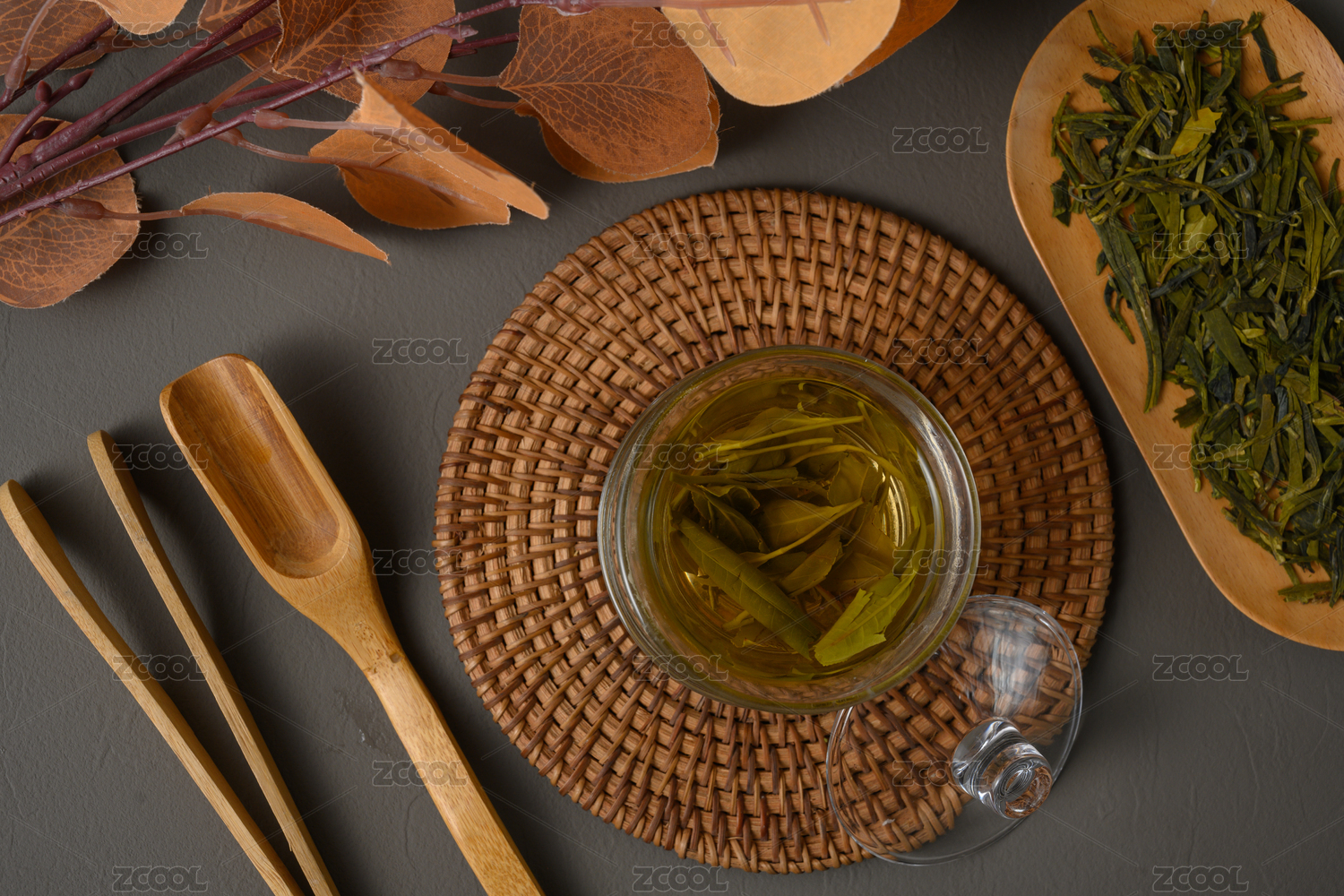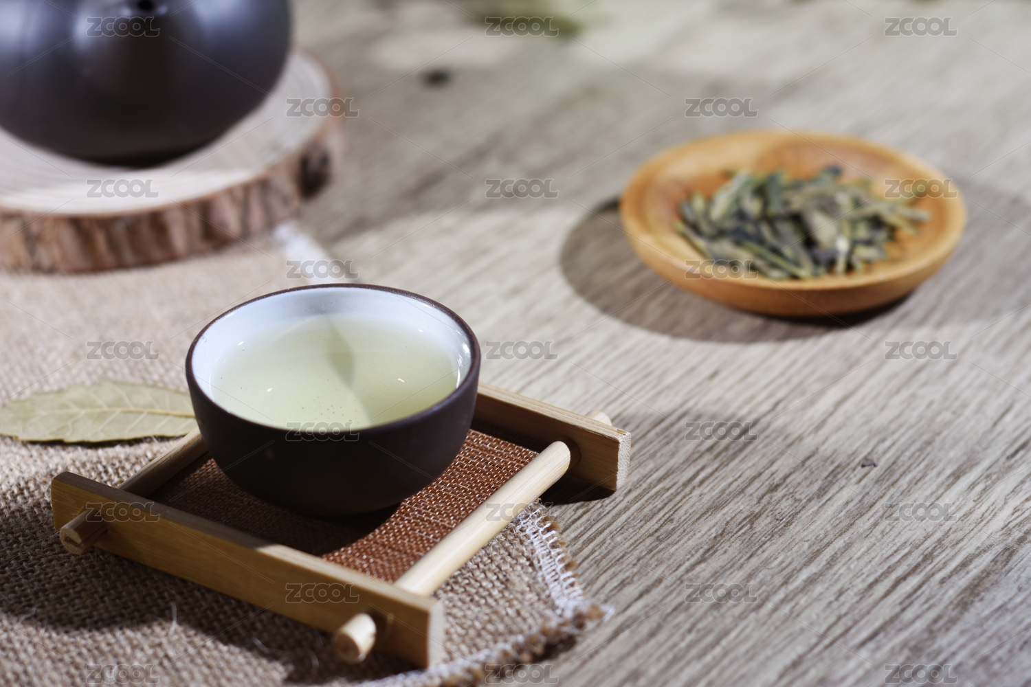 中国传统复古盖碗里面泡着新鲜的绿茶