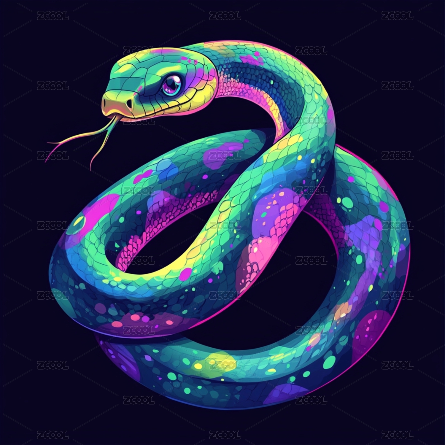 蛇年主题灵动缠绕的蛇壁纸插画艺术