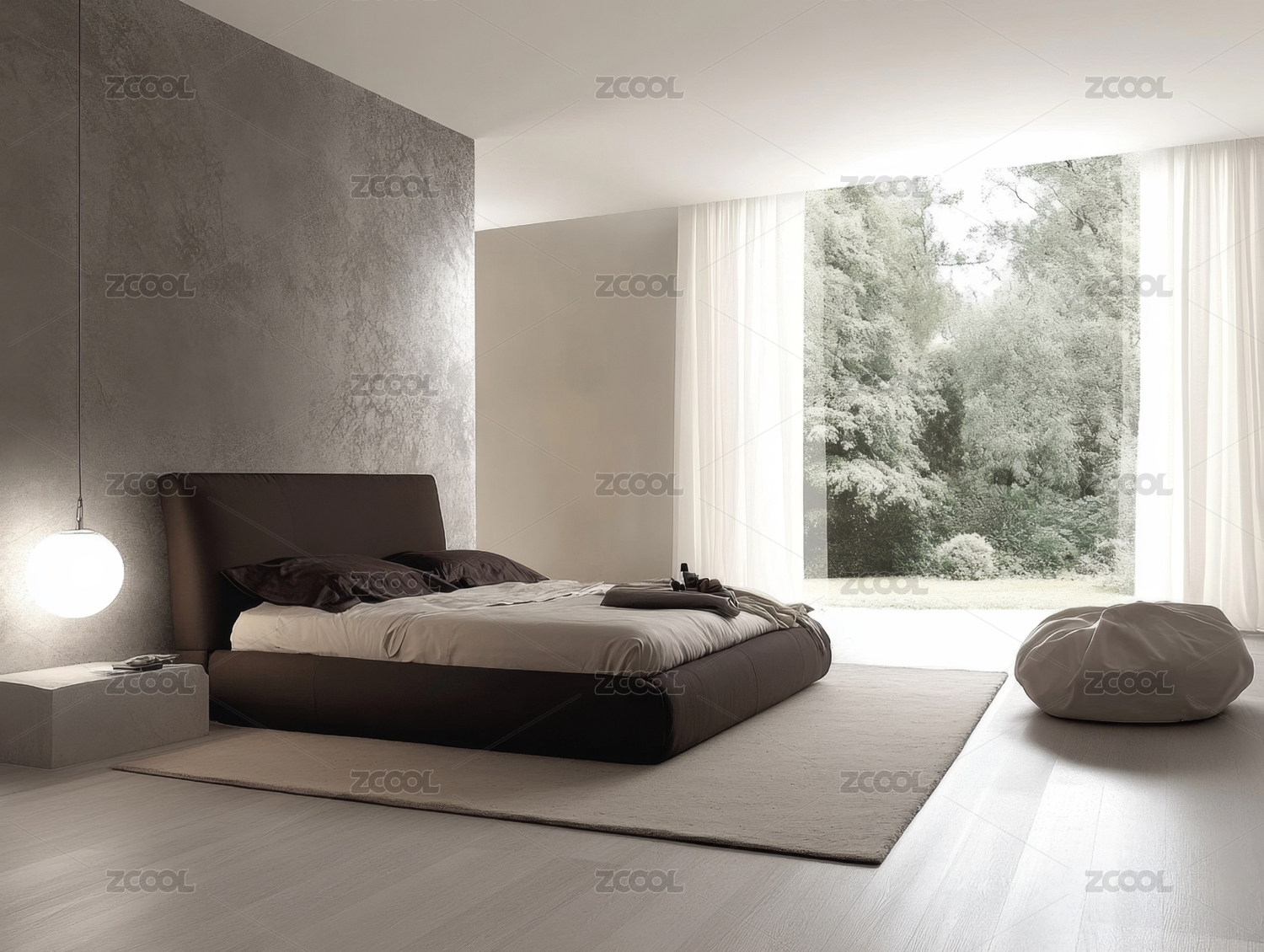 卧室,现代,简约,室内,设计,床,灯光,自然,景观,舒适