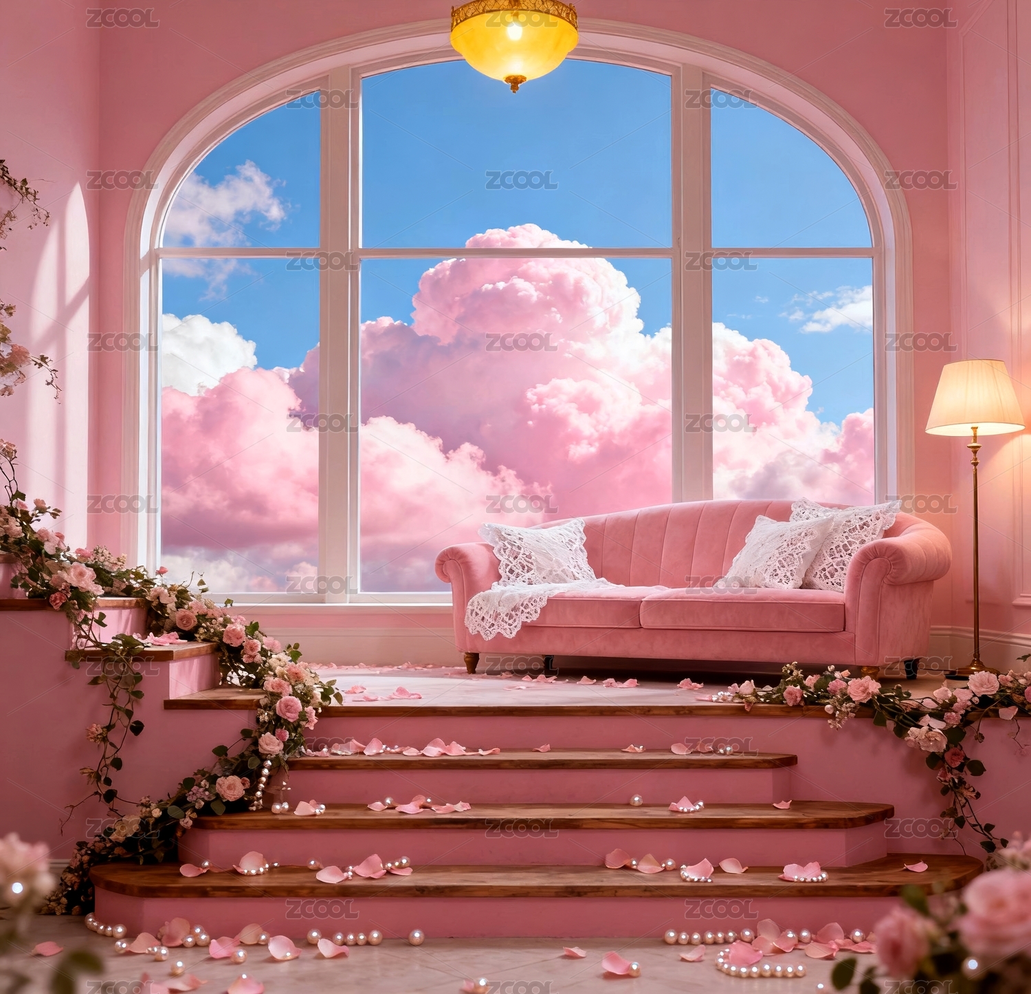 粉色的房间内部