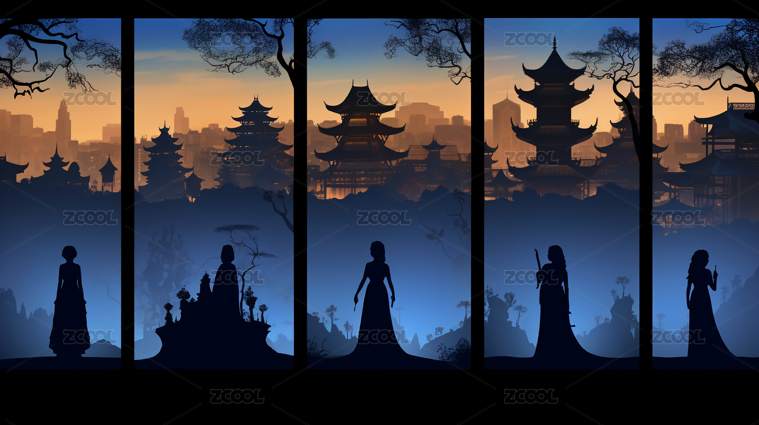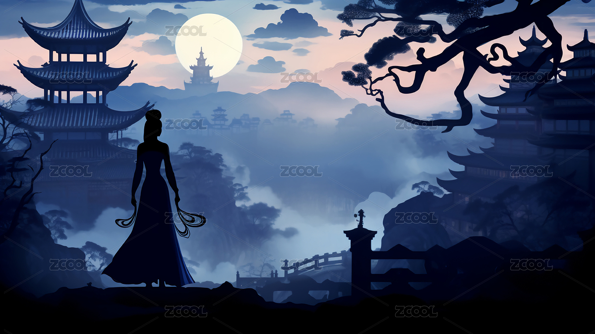 女人,古装,背影,城市,夜景,俯视,穿越,现代,科幻