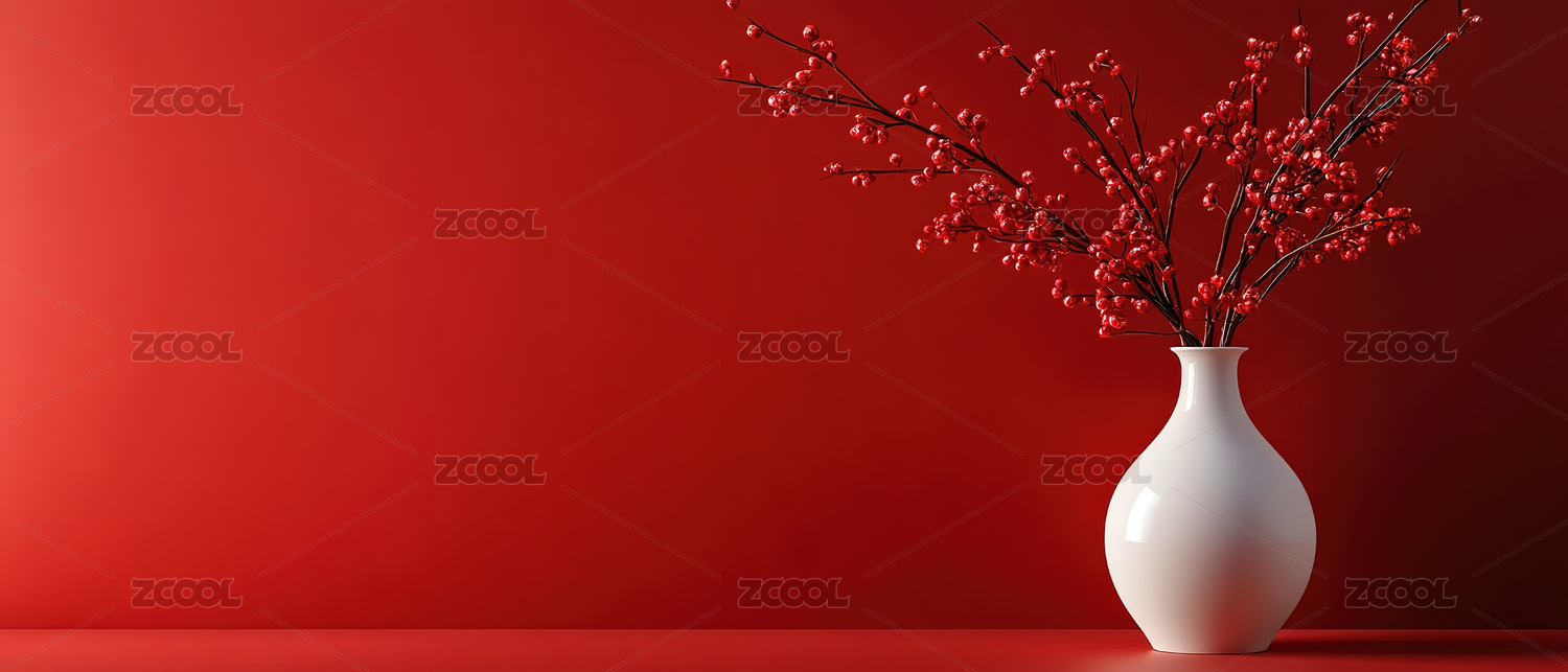 静物,花朵,花瓶,红色,背景,喜庆,氛围感,气氛,新年,春节