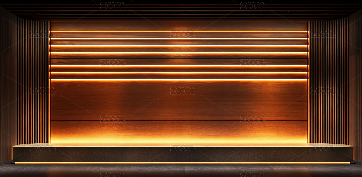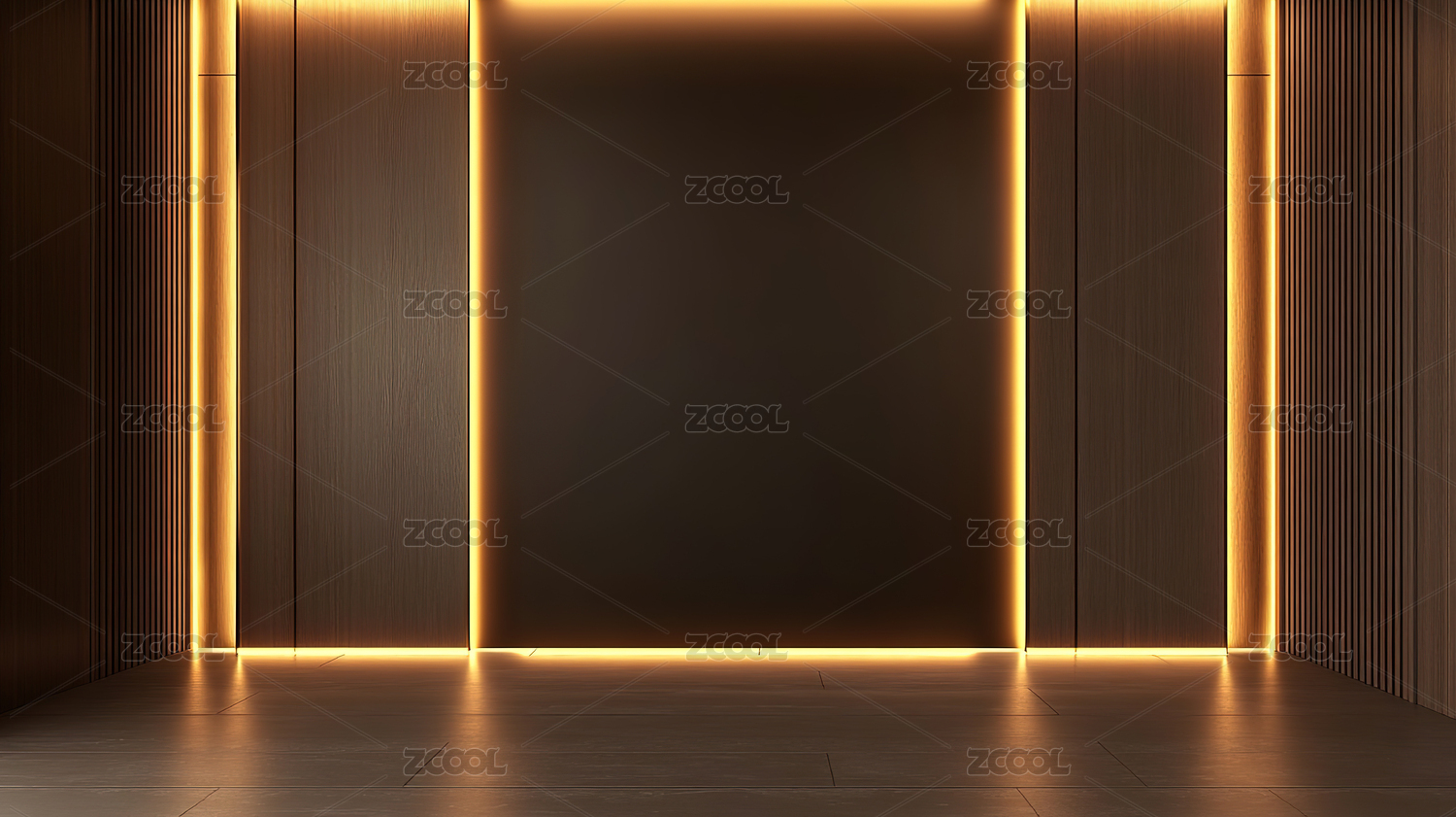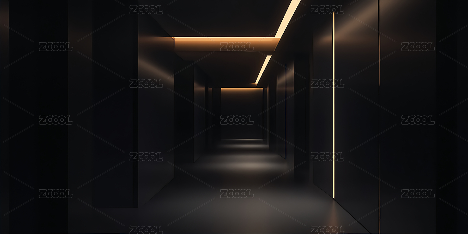 黑金现代几何建筑空间平台3D渲染抽象背景