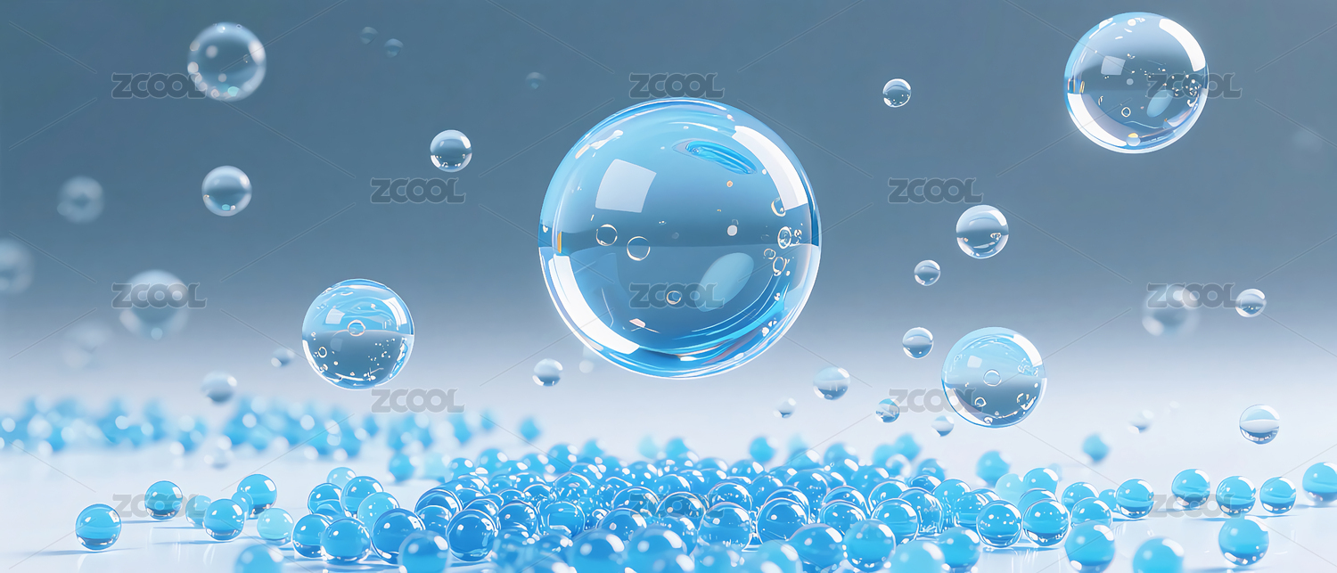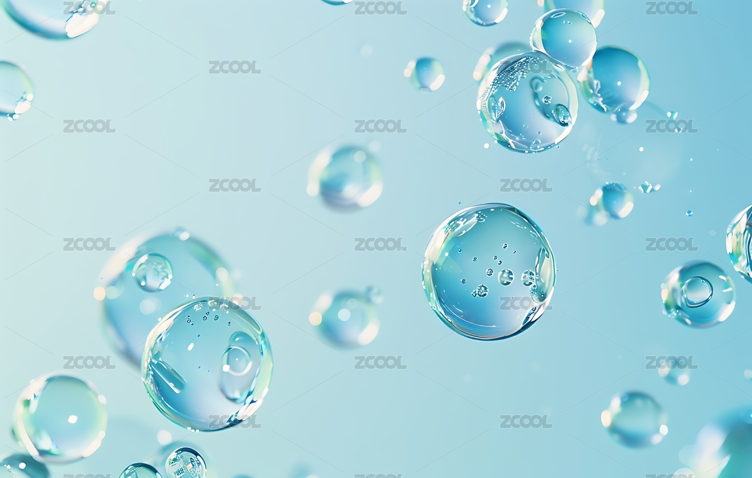 化妆品保湿水分子精华液体气泡背景3d渲染
