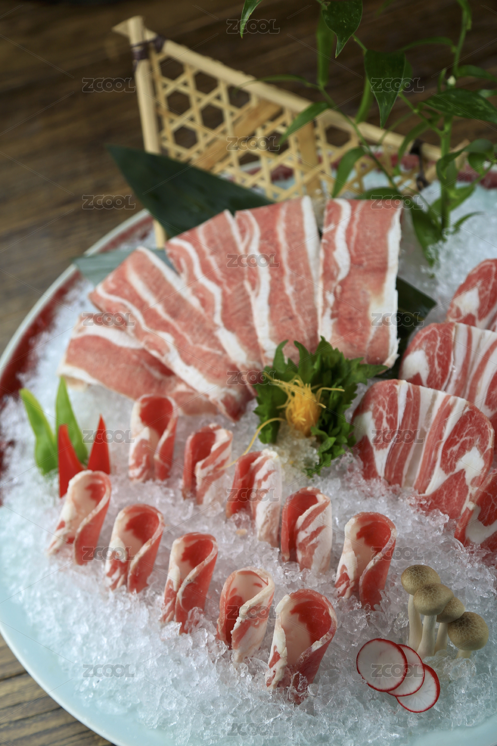 雪花肥牛片羊肉卷火锅烧烤食材菜品特写