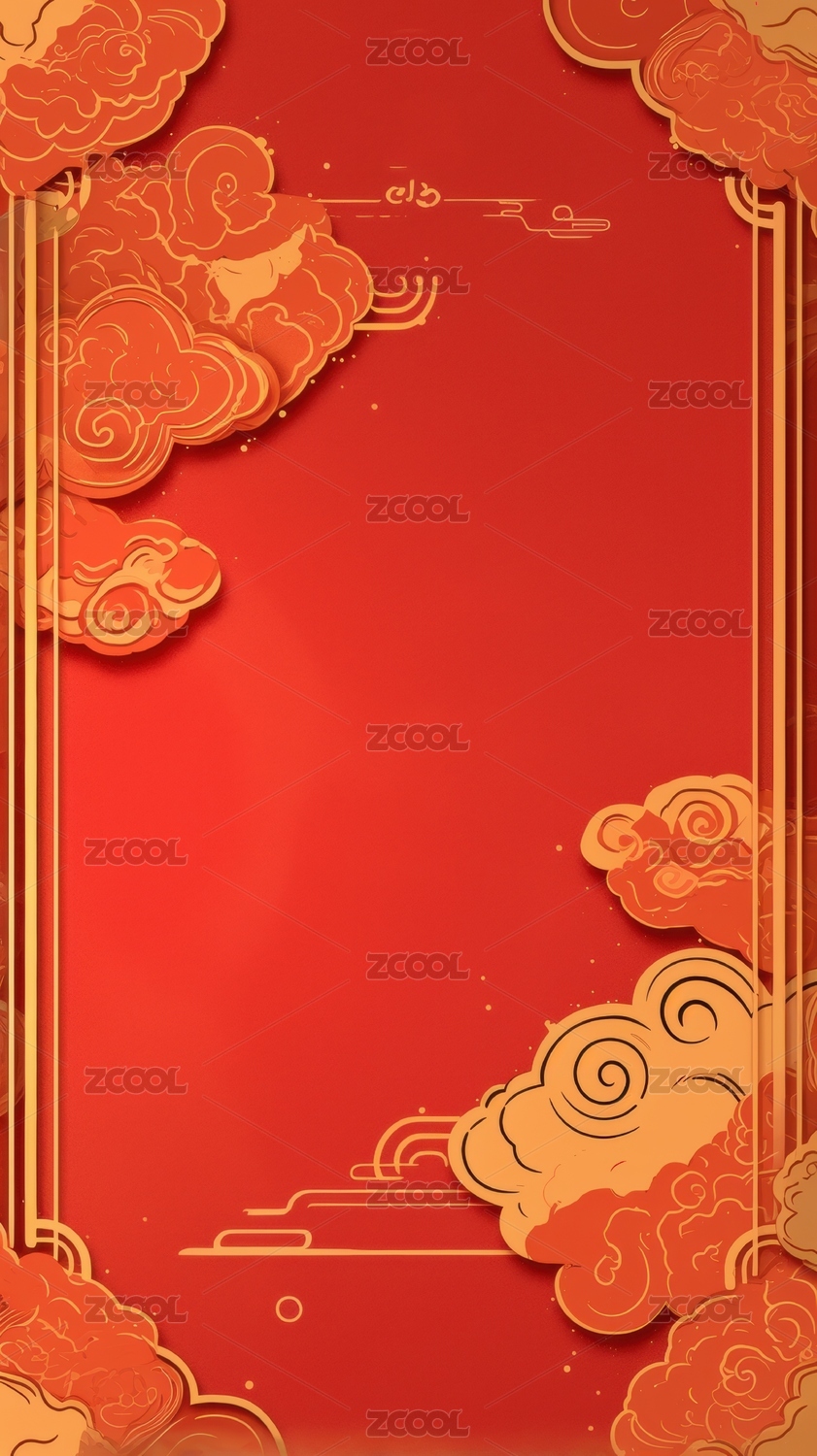 2025年,新年,春节,剪纸,蛇年,蛇,红色,灯笼,桃花,祥云