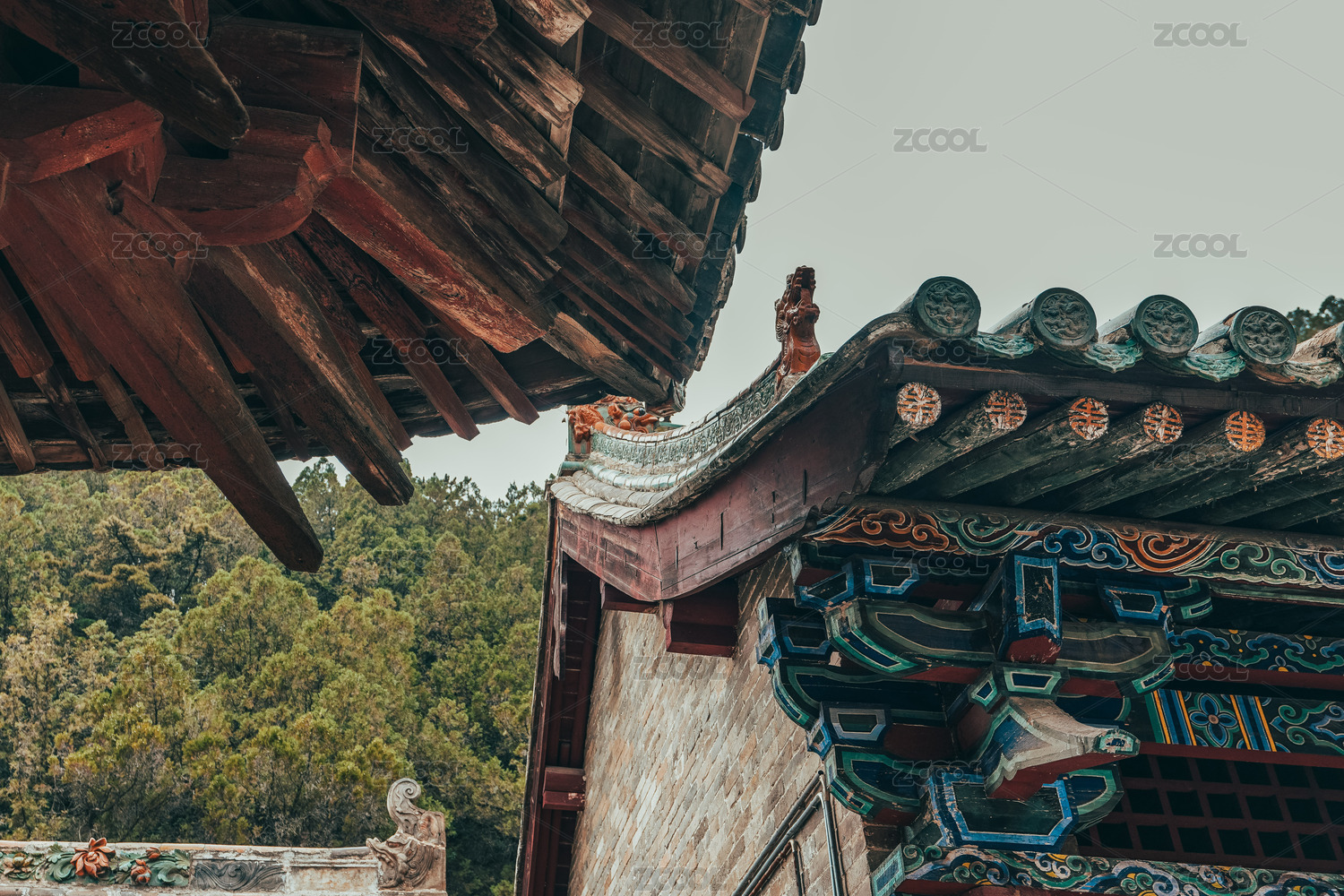 中国山西省五台县五台山佛母洞观音殿屋檐角