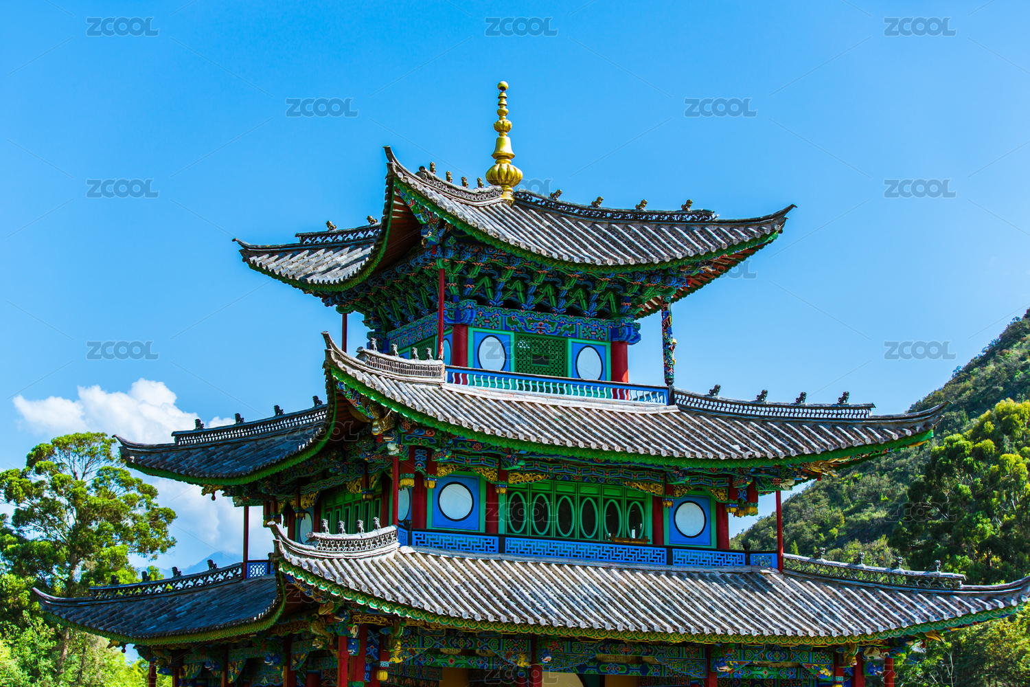 云南丽江黑龙潭公园五凤楼