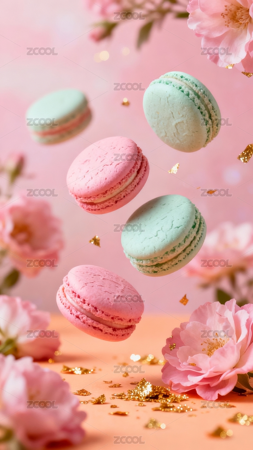 马卡龙蛋糕点心飞舞