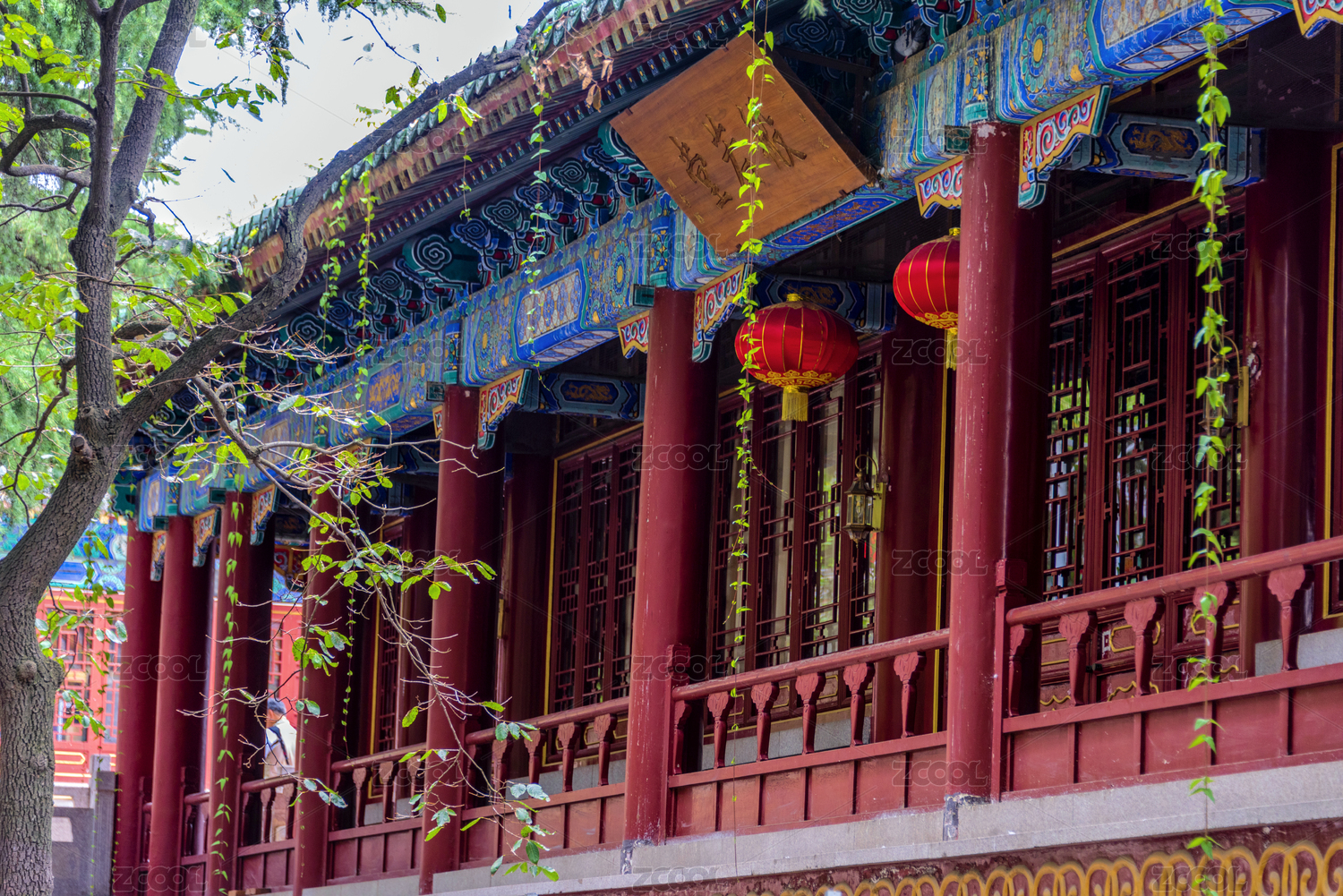 北京颐和园长廊悬挂的中国传统红色灯笼