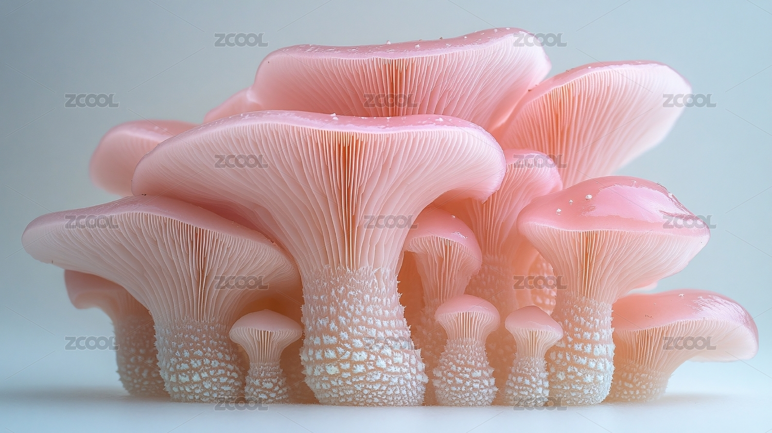 浅粉色簇拥生长的蘑菇