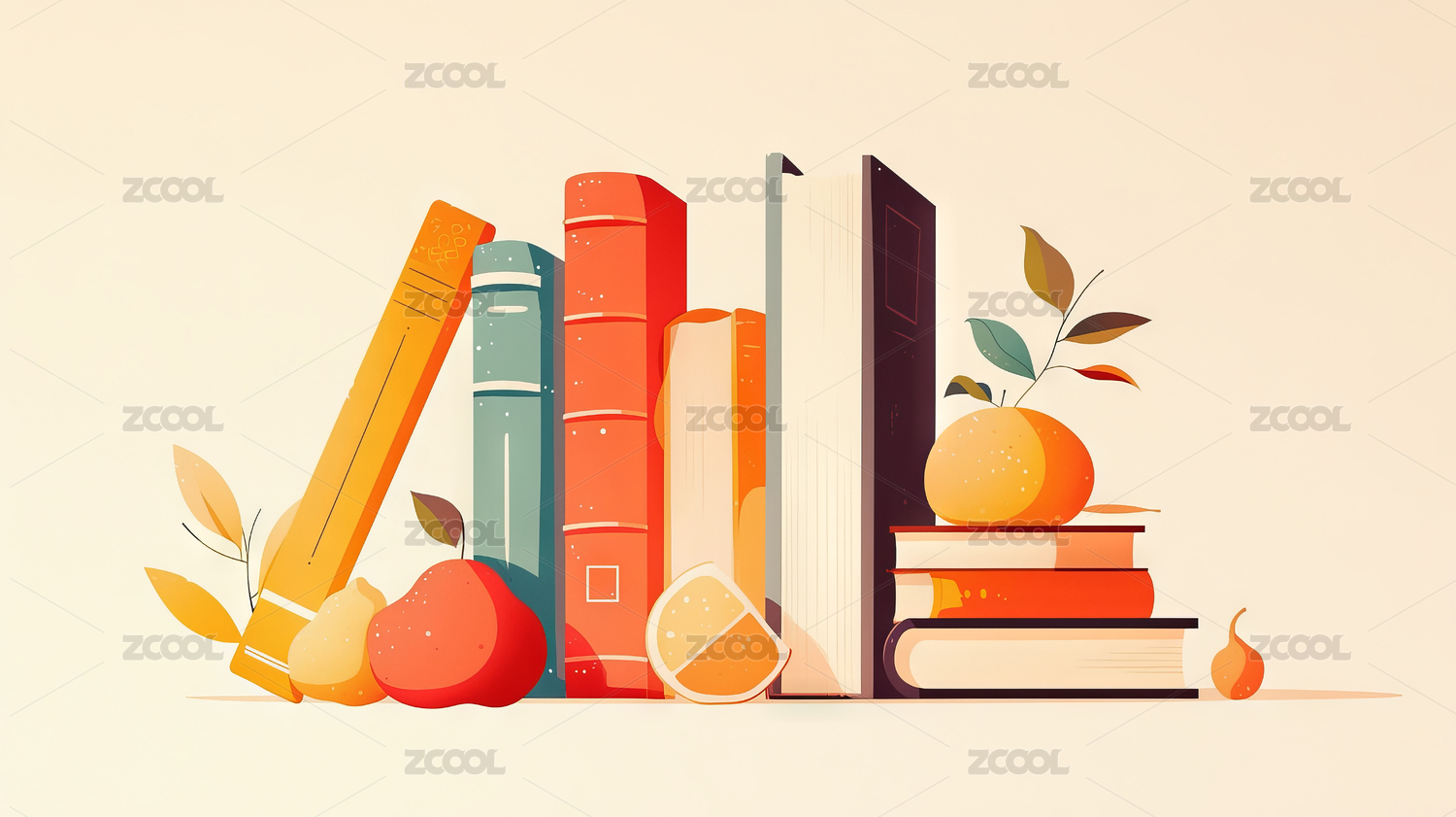 卡通,插画,插图,背景,素材,学习,书籍,书架,书本,书册