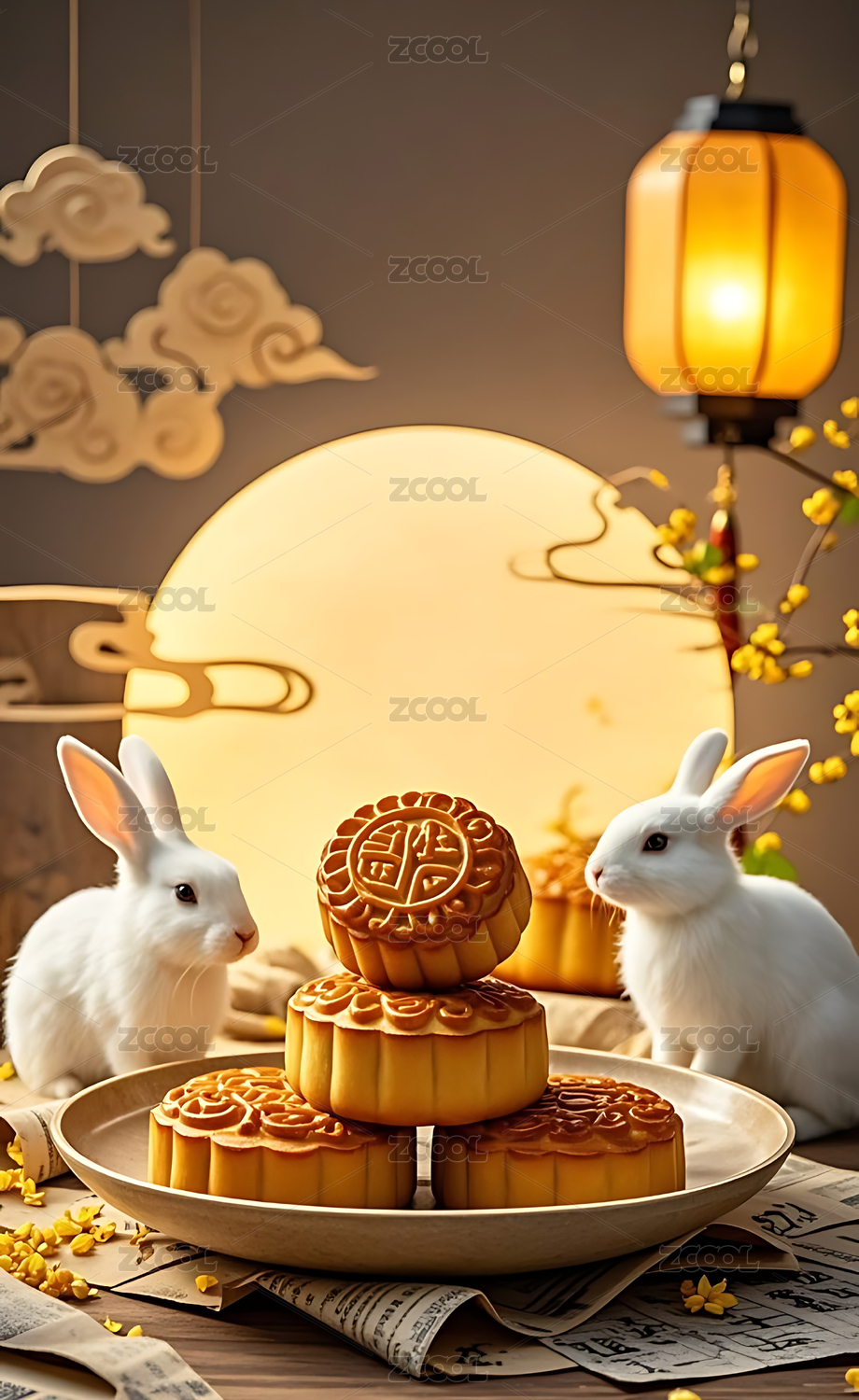 2.5D兔子在月饼上欢聚