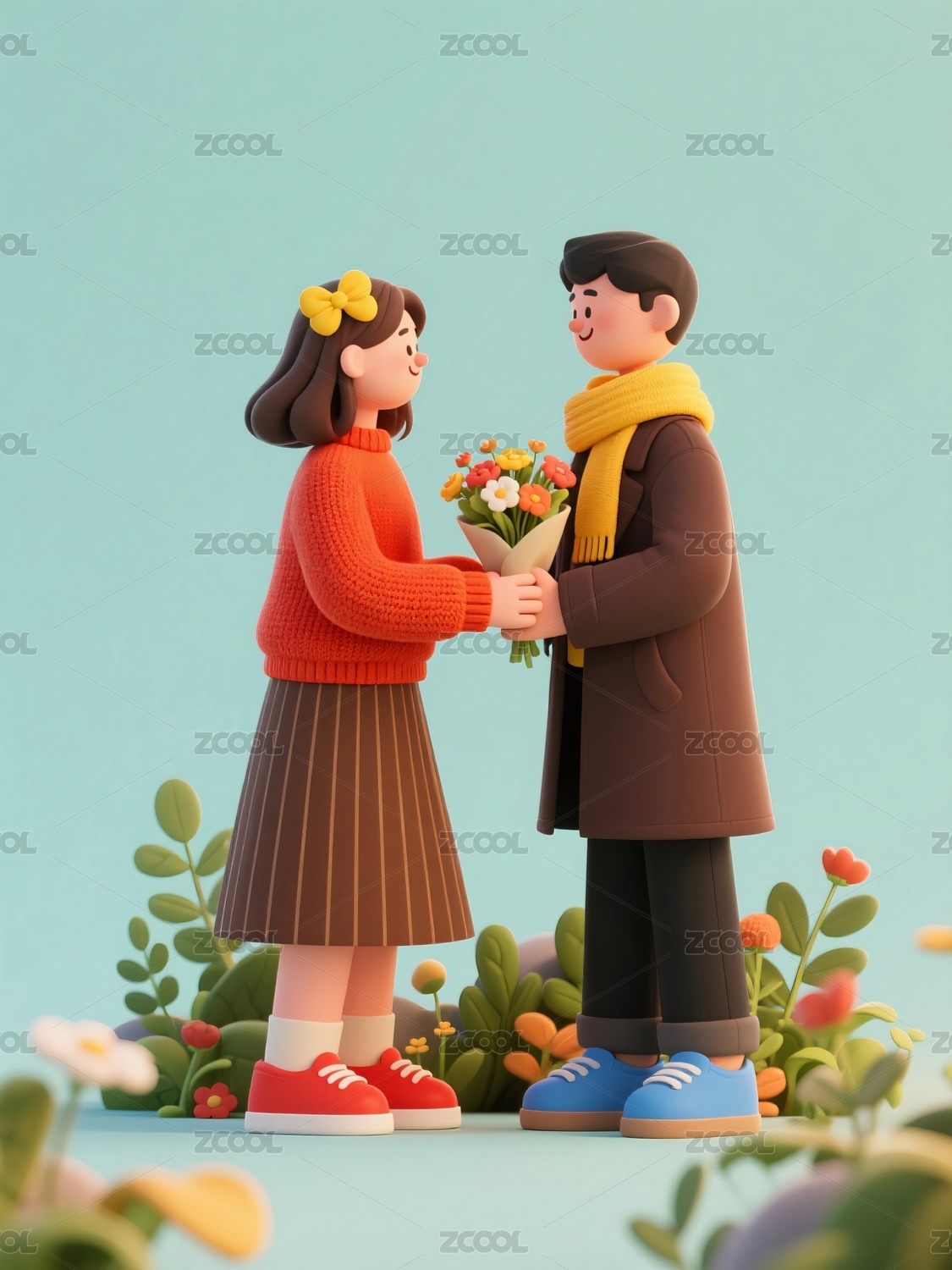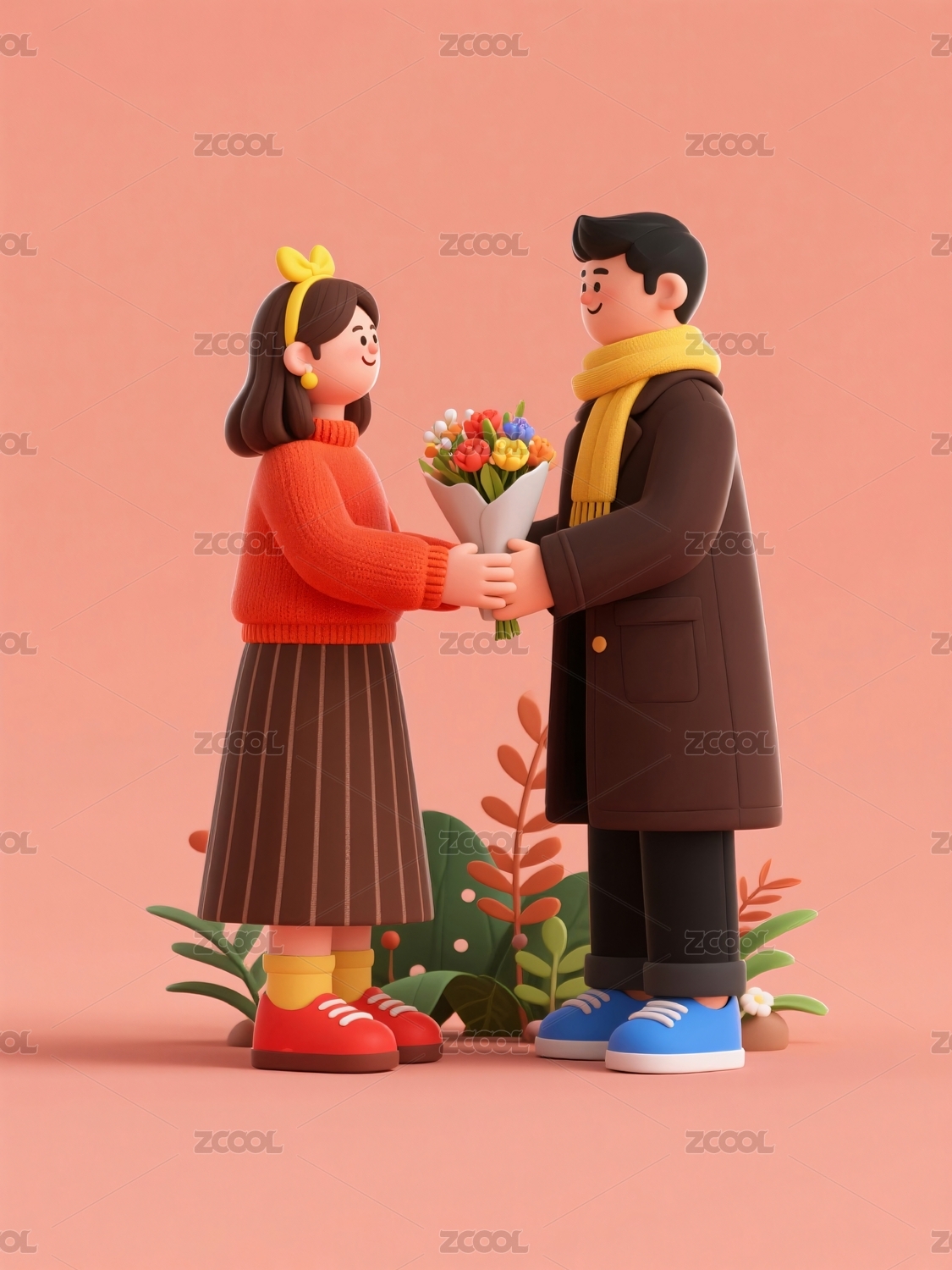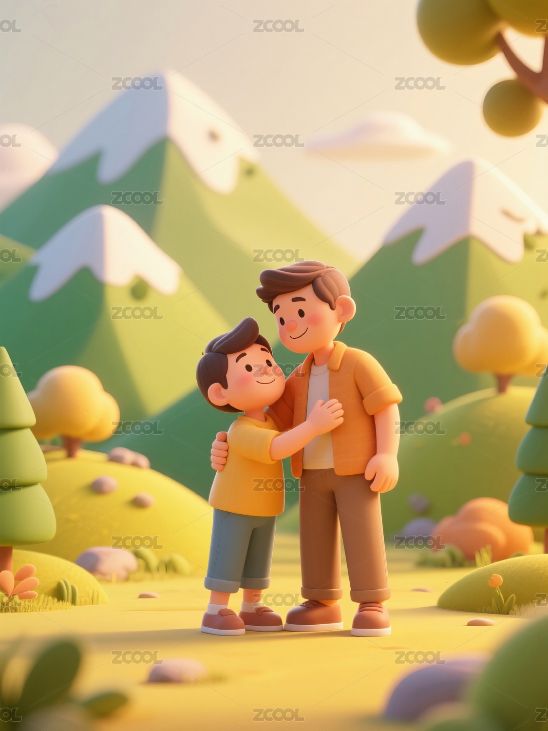 3D卡通盲盒手办风格老人,孩子陪伴概念