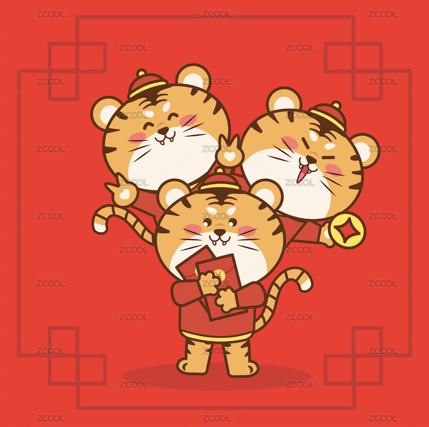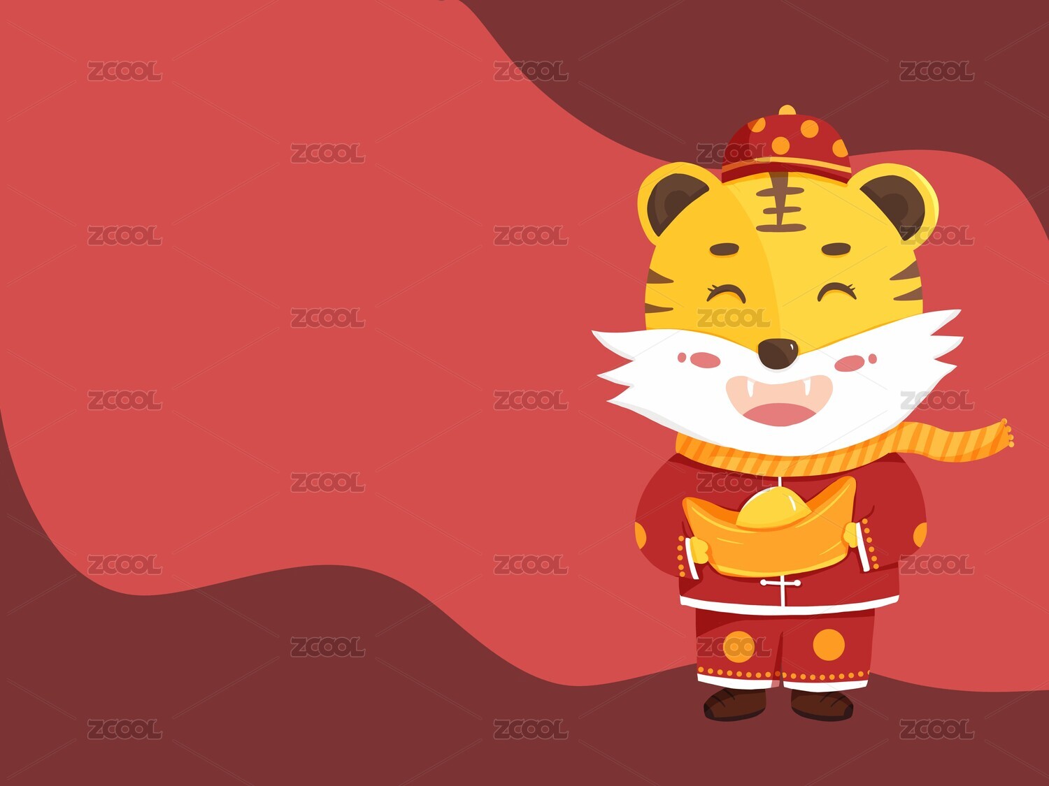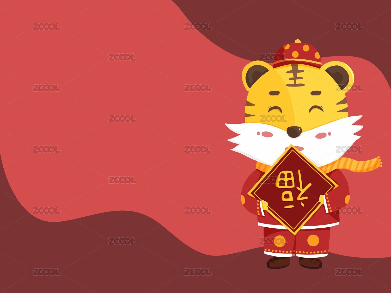 虎年春节喜庆插画新年卡通老虎喜庆贺岁海报