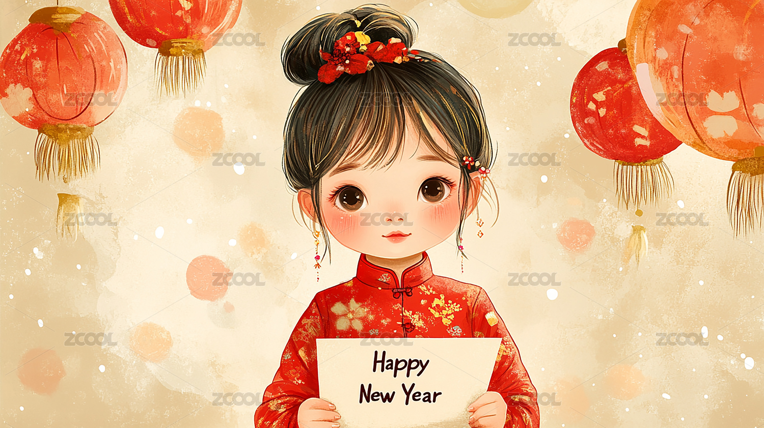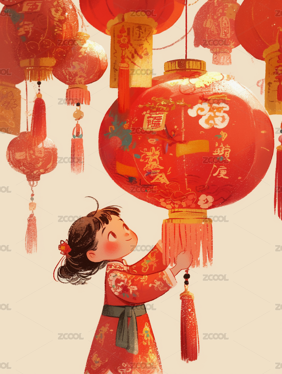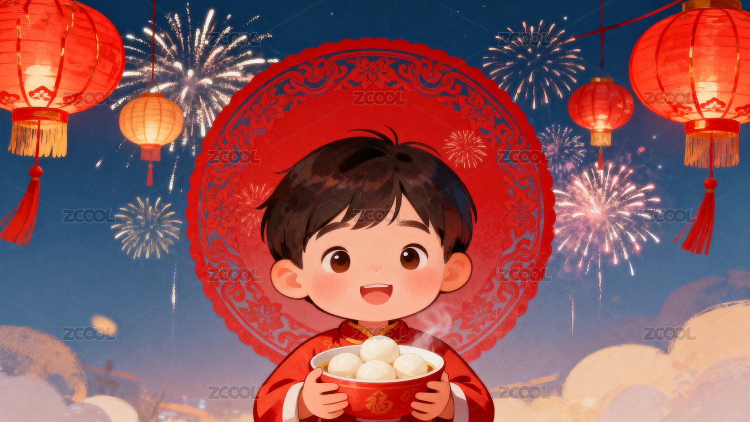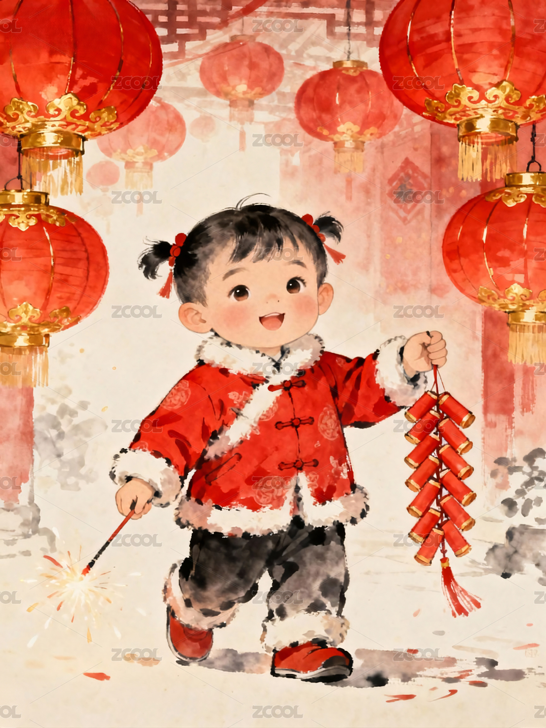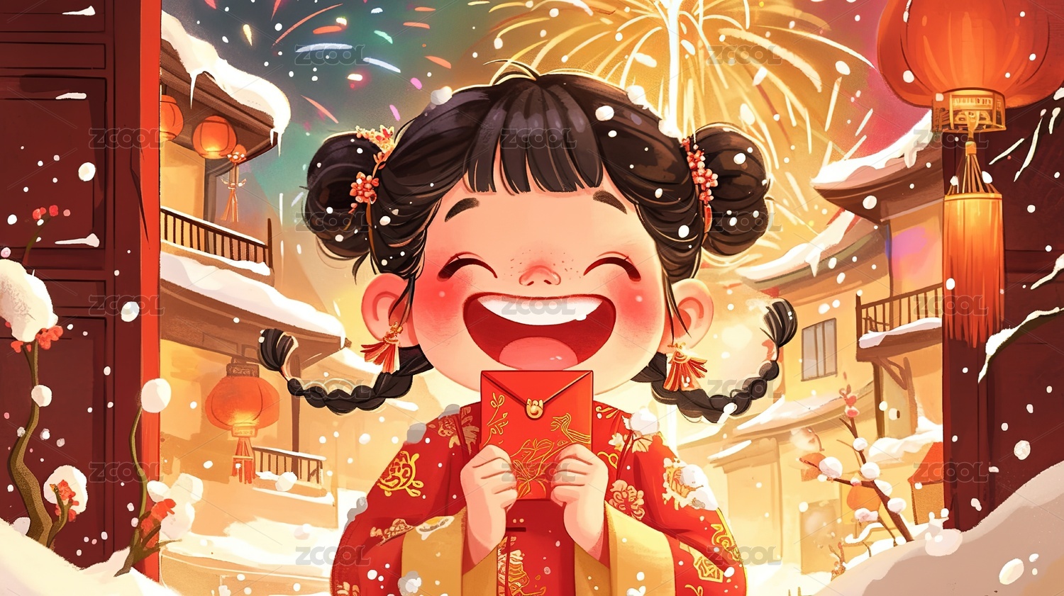 春节,节日,烟花,新年,孩子,儿童,卡通,插画