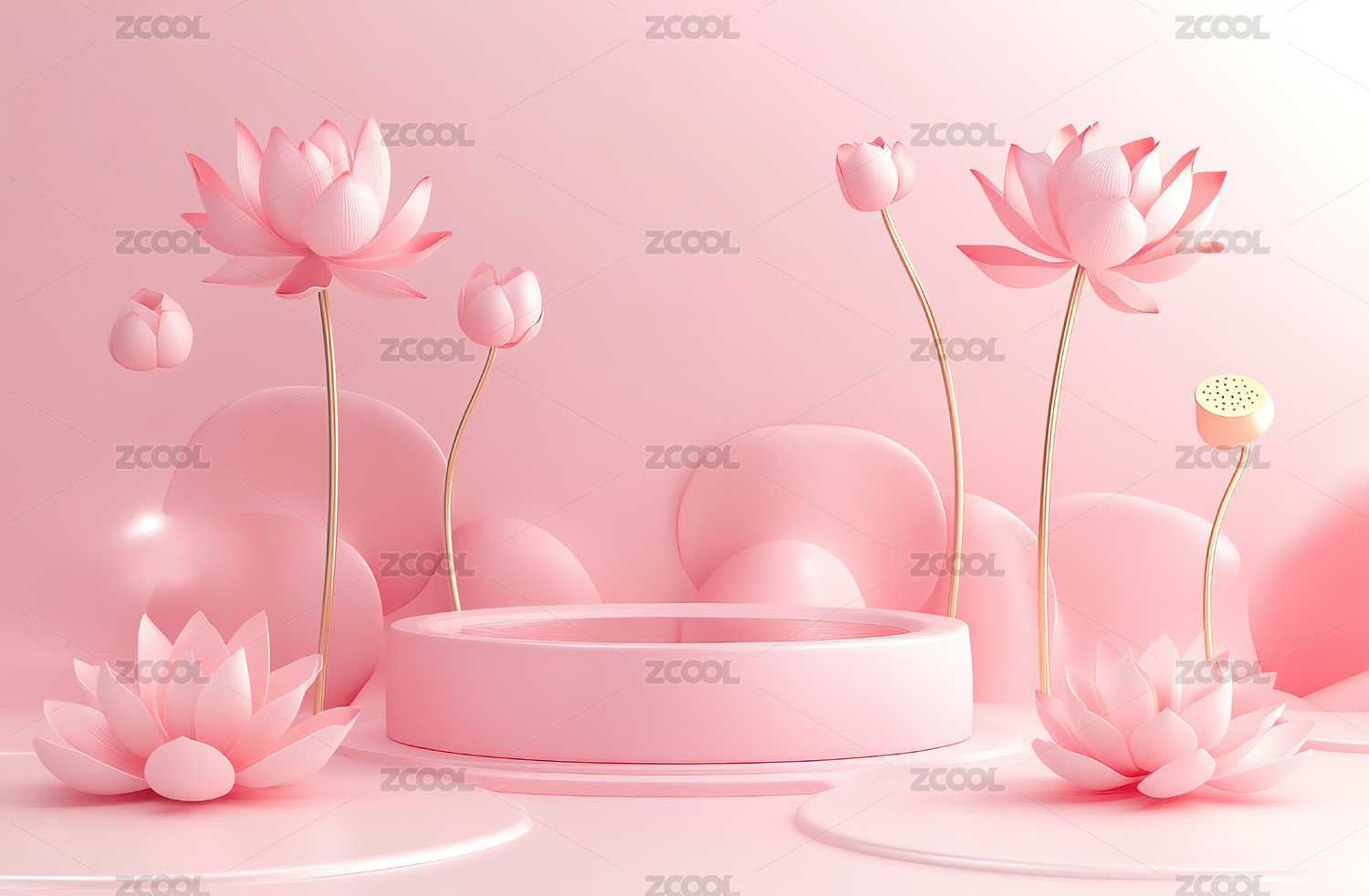 粉色背景下的莲花与圆形展台