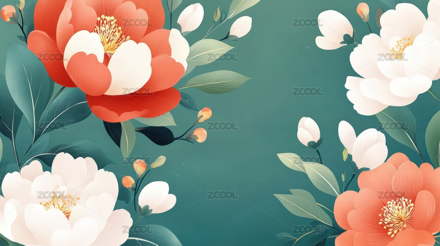 水墨风格红白花卉背景图