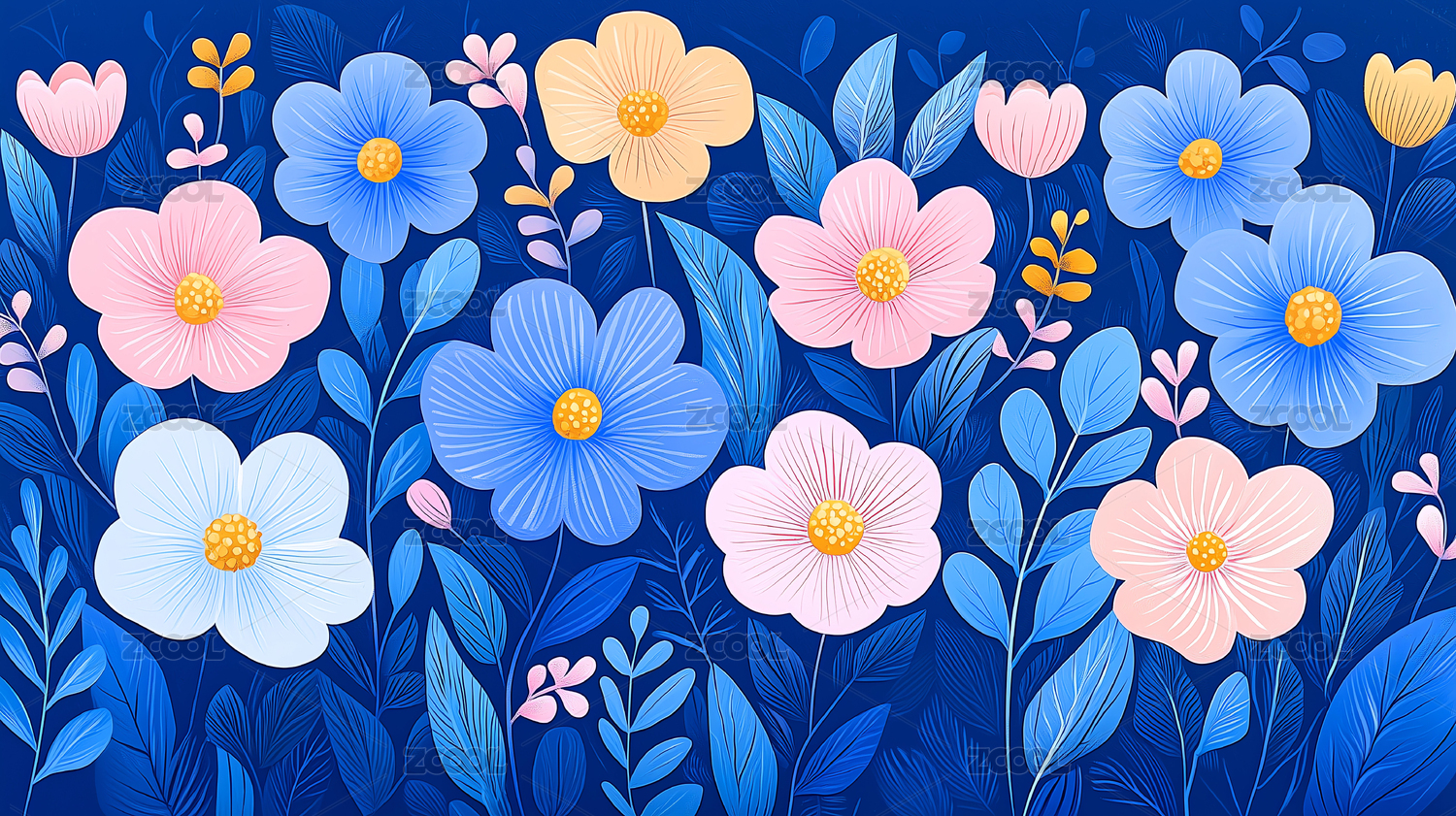 繁花似锦的花卉图案插画
