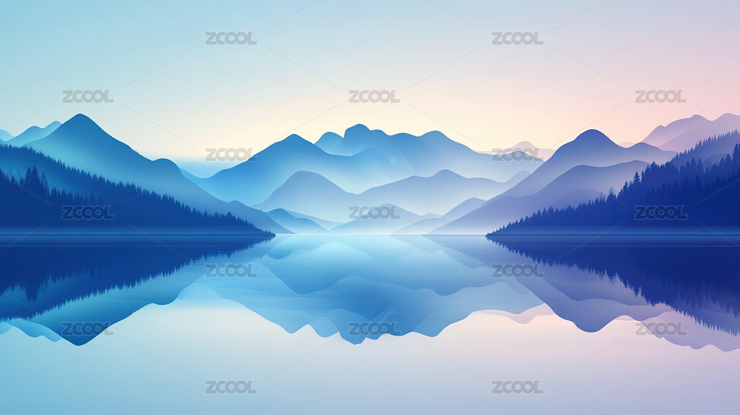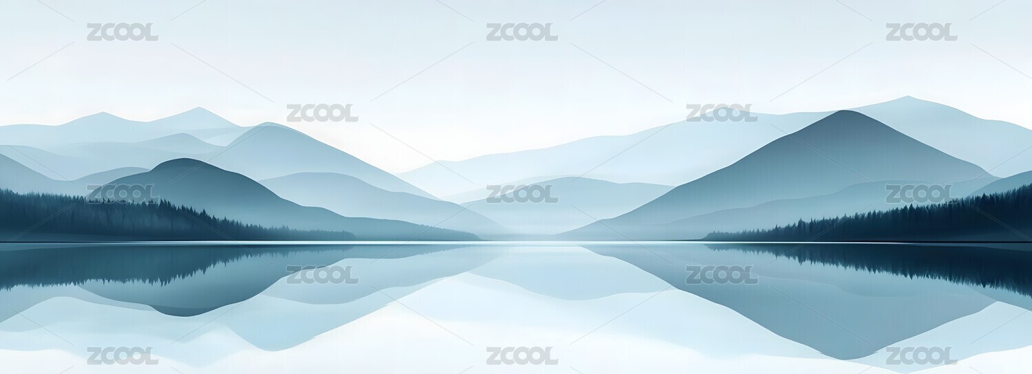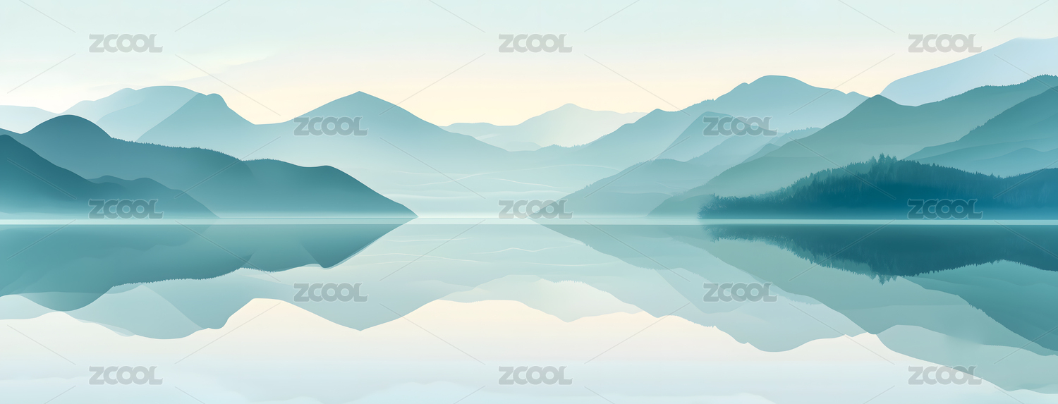 平静湖面与远山