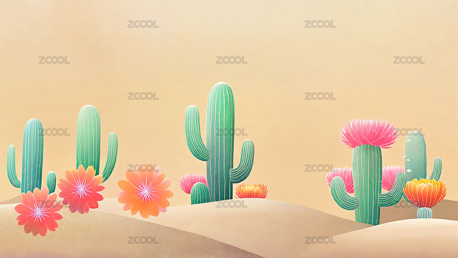 仙人掌和沙漠风景,复古拼贴画创意海报