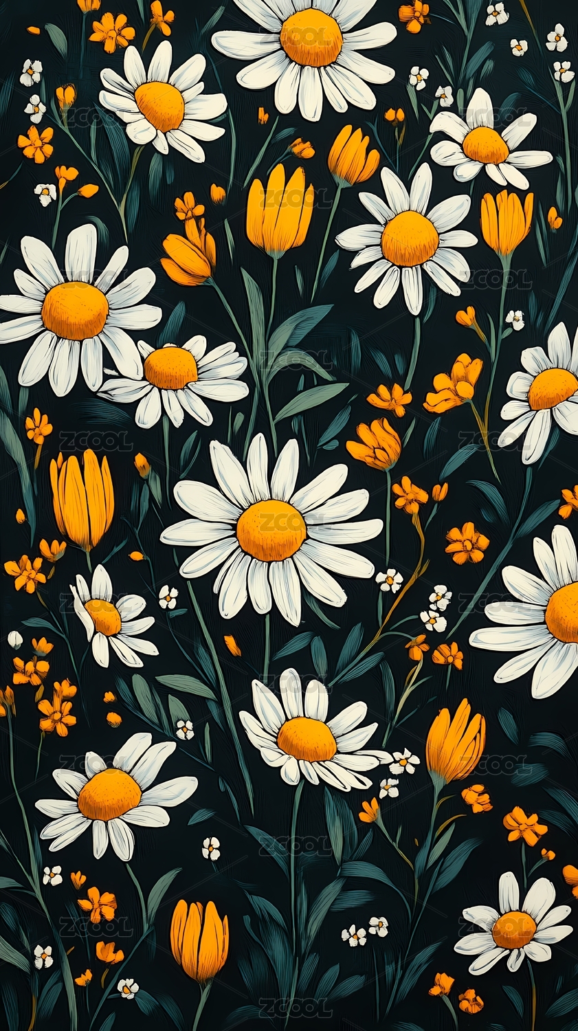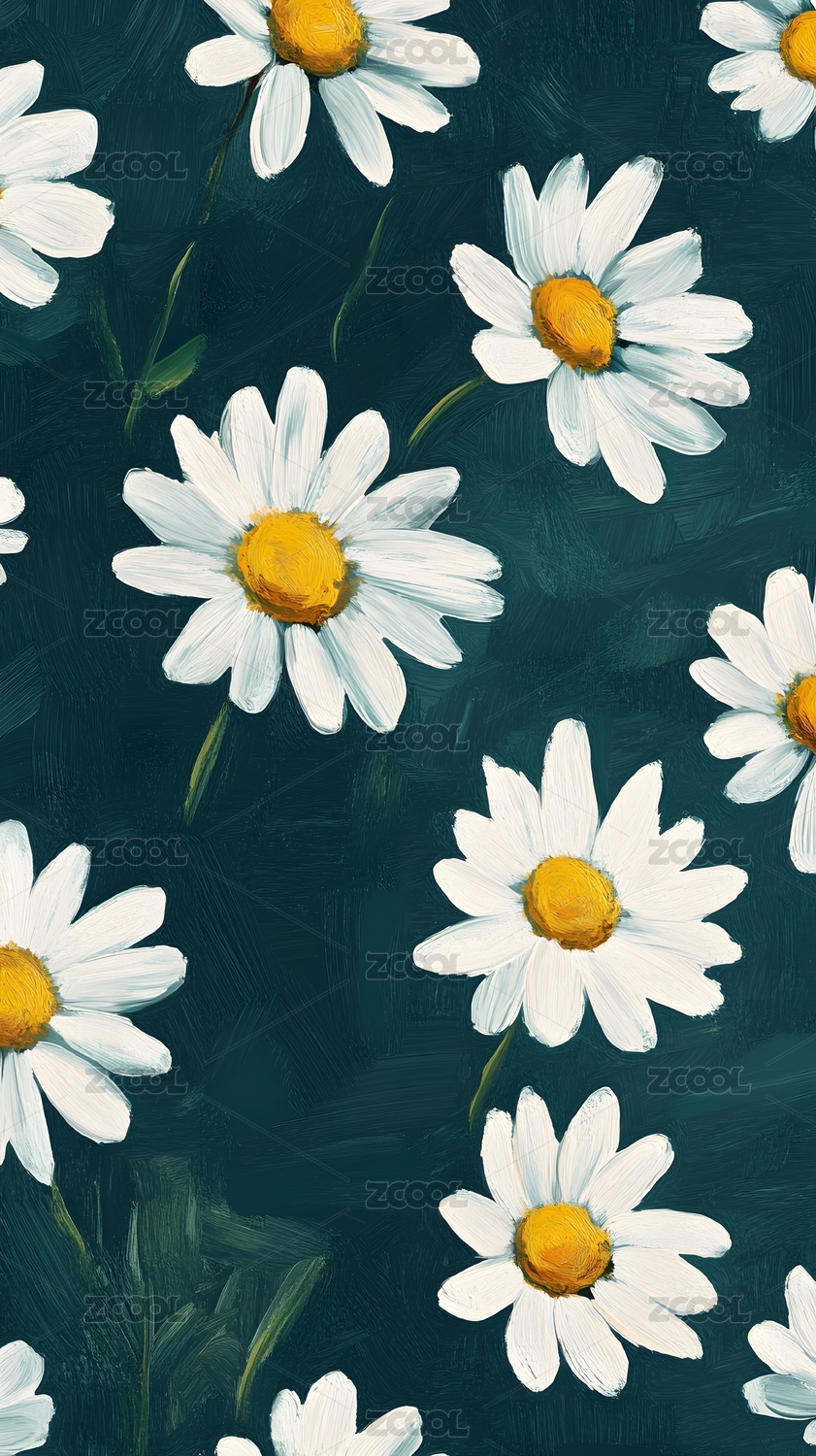复古,洋甘菊,植物,植物群,自然,图案,艺术,油画,花束,插图