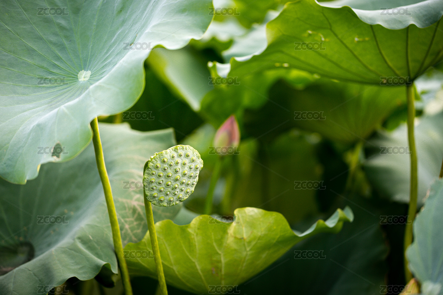 盛夏枯萎的荷叶与快要干枯的莲篷