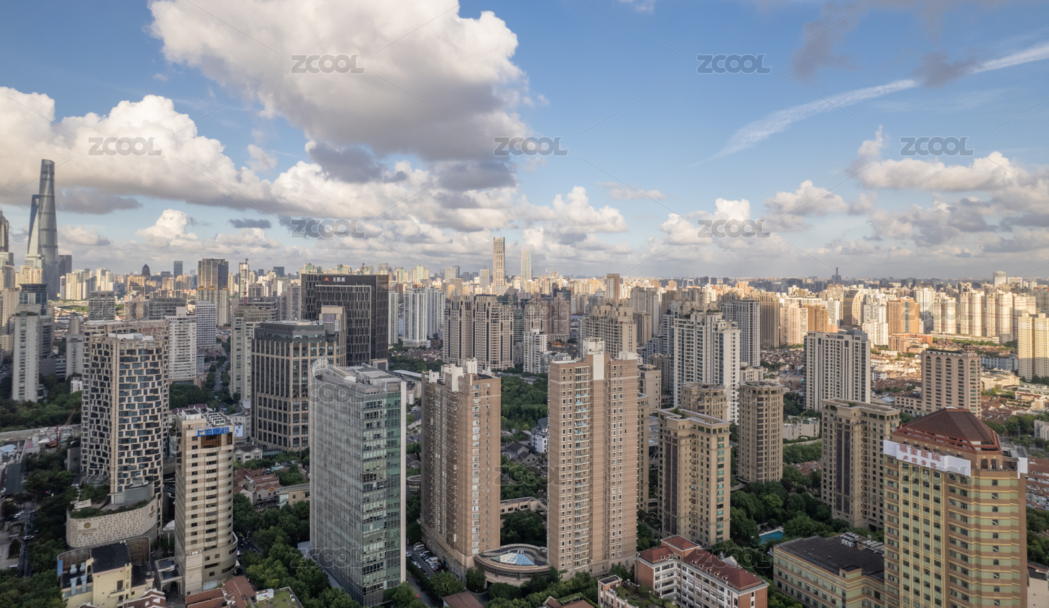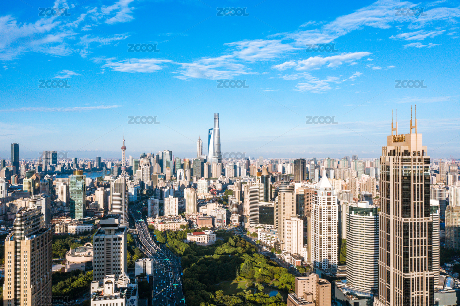 航拍上海地标建筑陆家嘴城市天际线全景风光