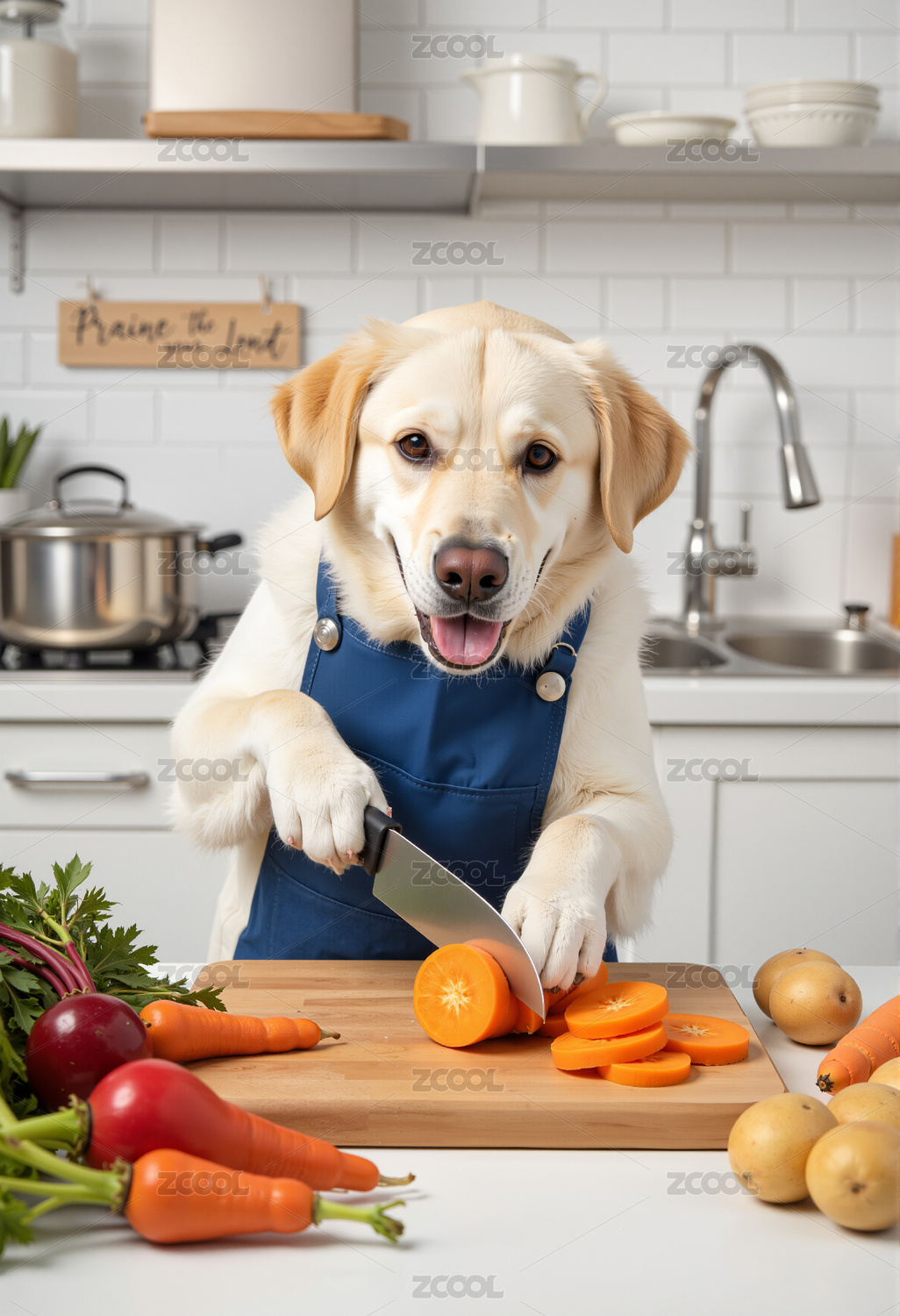 狗狗,厨师,料理,烹饪,厨房,蔬菜,胡萝卜,土豆,刀,砧板