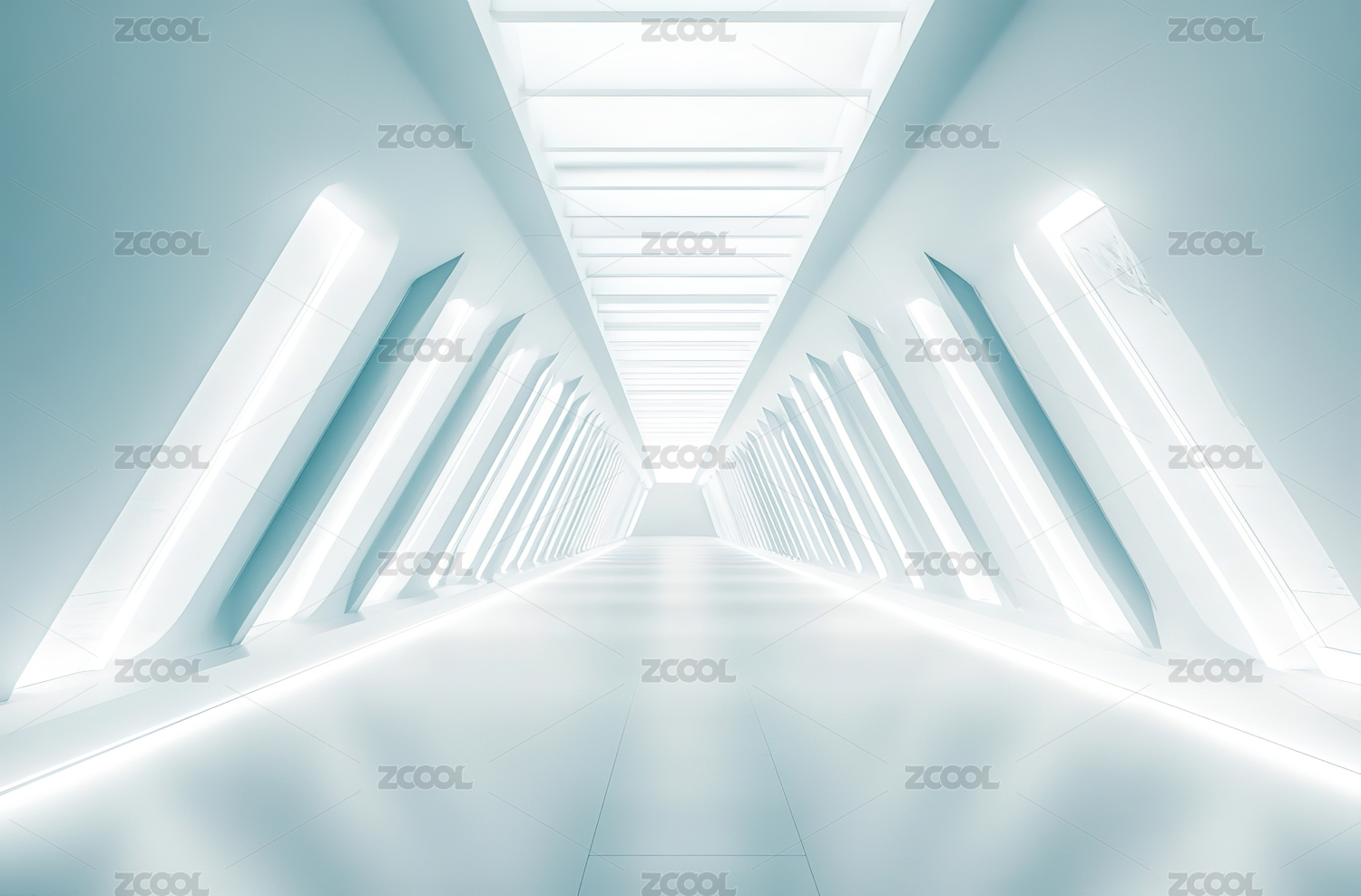 冷色蓝光勾勒的未来感视觉长廊