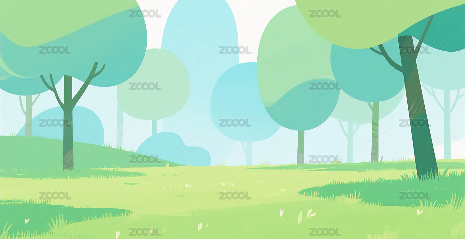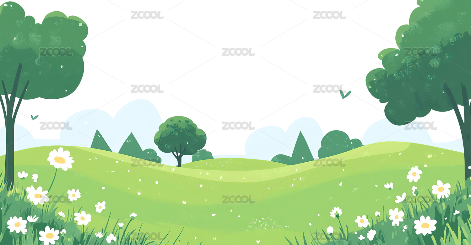 卡通草地远山自然风景